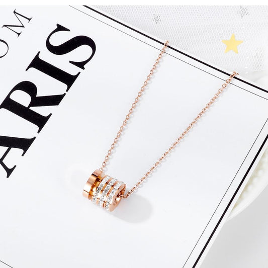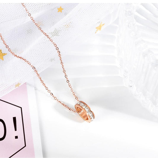 Women Chain Necklace Shiny Stone Round Designer New Clavicle Link Steel Rose Gold Pendant Lady Korea Jewerly