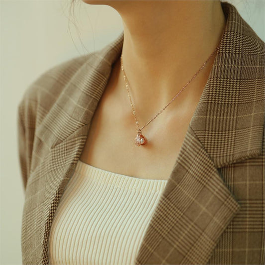 Women Chain Necklace Rose Gold Pearl Shell Clavicle Chain Stainless Steel Design Necklaces Fashion Jewelry