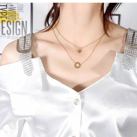 Women Double Layer Necklace Sun Smile Tredy Chain Link Stainless Steel Rose Gold Korea Style Jewelry