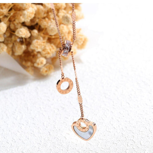 Korean Rose Gold Necklace Titanium Steel Necklace Female Heart-Shaped White Shell Roman Circle Crystal Clavicle Chain