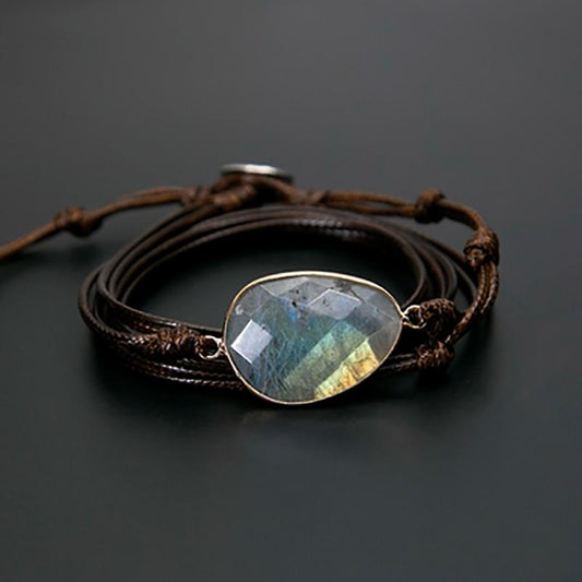 Rope Wrap Bracelet Natural Stones Labradorite Boho Long Friendship Bracelet Unique Handmade Ethnic Bracelets