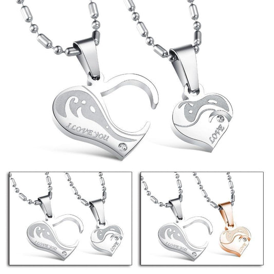 "Forever Love" Brand Couple Necklace Set Stainless Steel Lovers Promise Jewelry