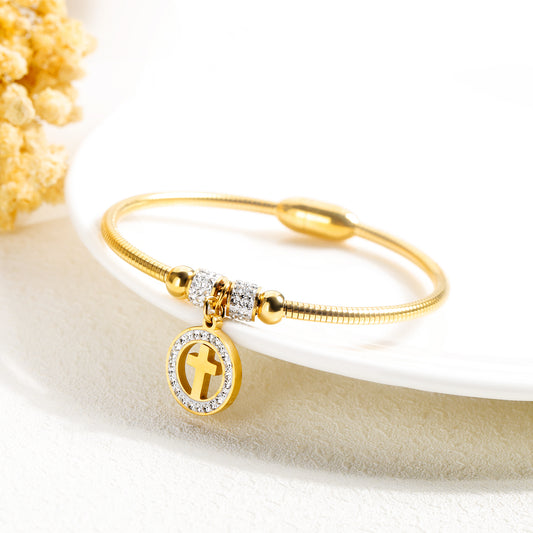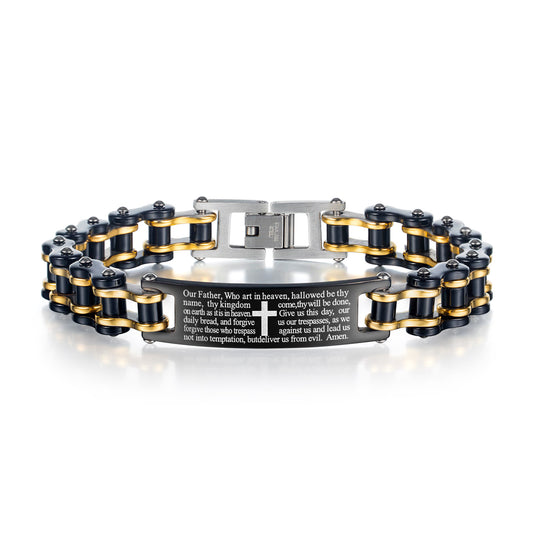 Creative Popular Men's Titanium Steel Motorcycle Chain Religious Cross Bracelet