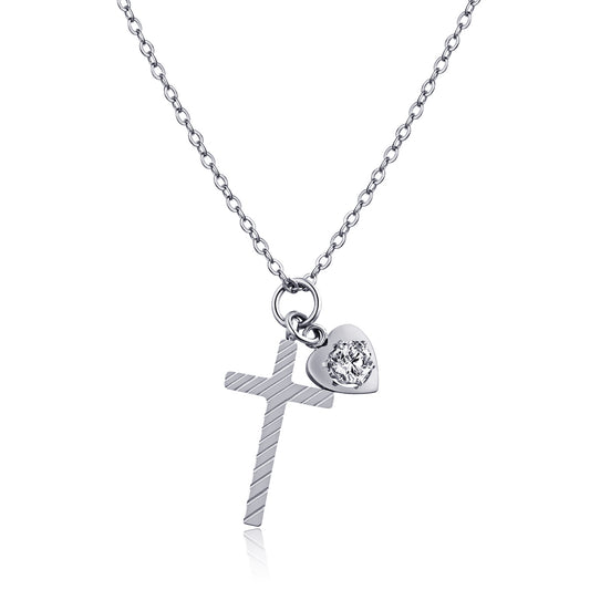 Fashion Love Cross Necklace Titanium Steel Plated Rose Gold Clavicle Necklace Women