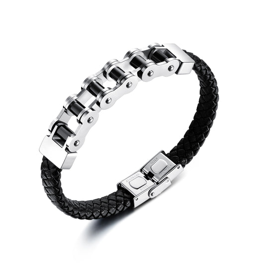Fashionable Personality Domineering Titanium Steel Bicycle Chain Braided Leather Rope Bracelet