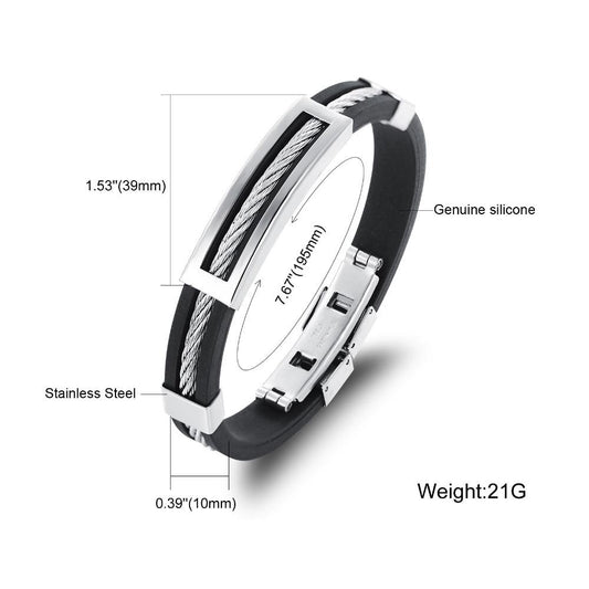 Trendy Silicone Stainless Steel Wire-Cable Chain Handmade Wide Wristband Black Punk Rock Men Accessory