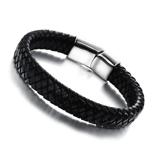 Fashion Knitted Genuine Leather Rope Chain Man Bracelets Classical Simple Design Men Jewelry With Magnet Buckle