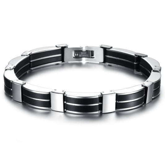 Cool Man Genuine Silicone Bangles Fashion Stainless Steel Hol Out Men Jewelry 19.5cm Long Accessories Cheap