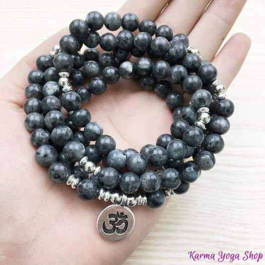 "Om" Mala Bracelet with 108 Natural Gray Labradorite Beads