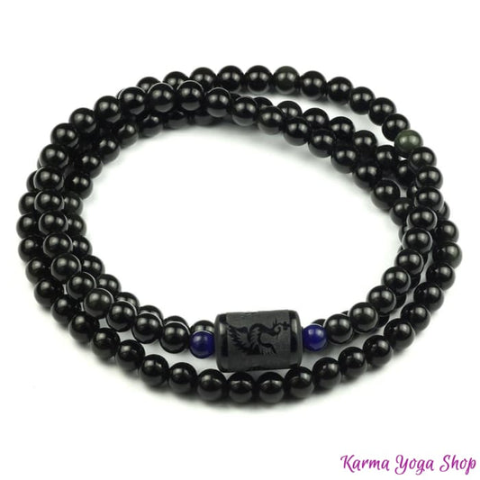 Hand Carved Black Obsidian Buddha Luck Bracelet
