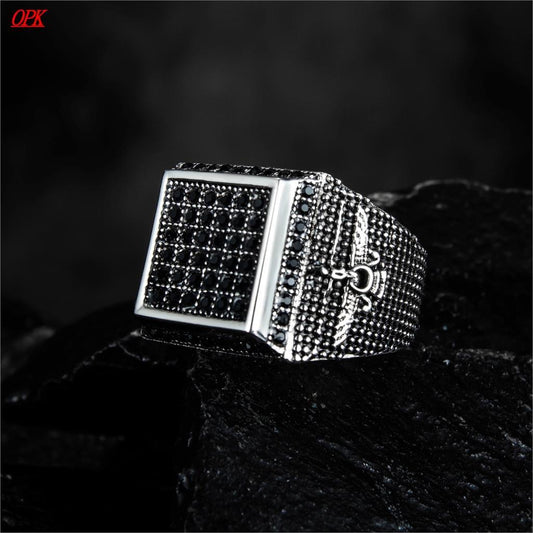 Turkey Men Rings Black Gold Full CZ Diamond Eagle Squart Design Rings Luxury Titanium Steel Vintage Punk Party Cool