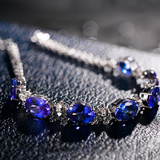 Brilliant Blue Cubic Zirconia Tennis Bracelet for Female Adjustable Natural Crystal Chain Charm Bracelet Wedding Evening Jewelry