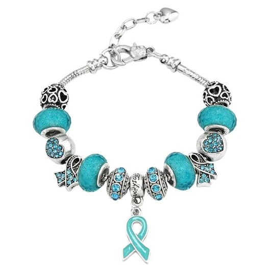 Breast Cancer Awareness Pink Ribbon Charm Bracelet
