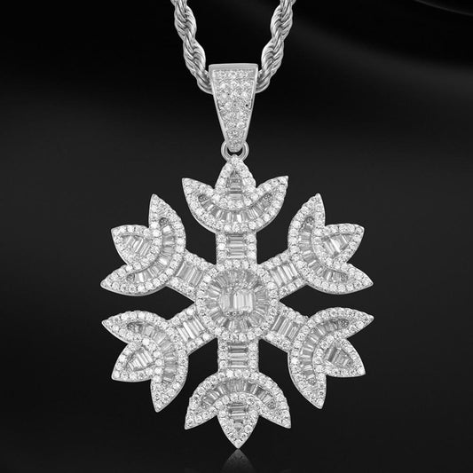 Iced Out Snow Pendant Necklace- Baguette Crystal Hip Hop Charm