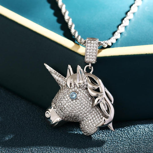 Cute Unicorn Horse Pendant Necklace- Full Of Rhinestone With Blue Eye