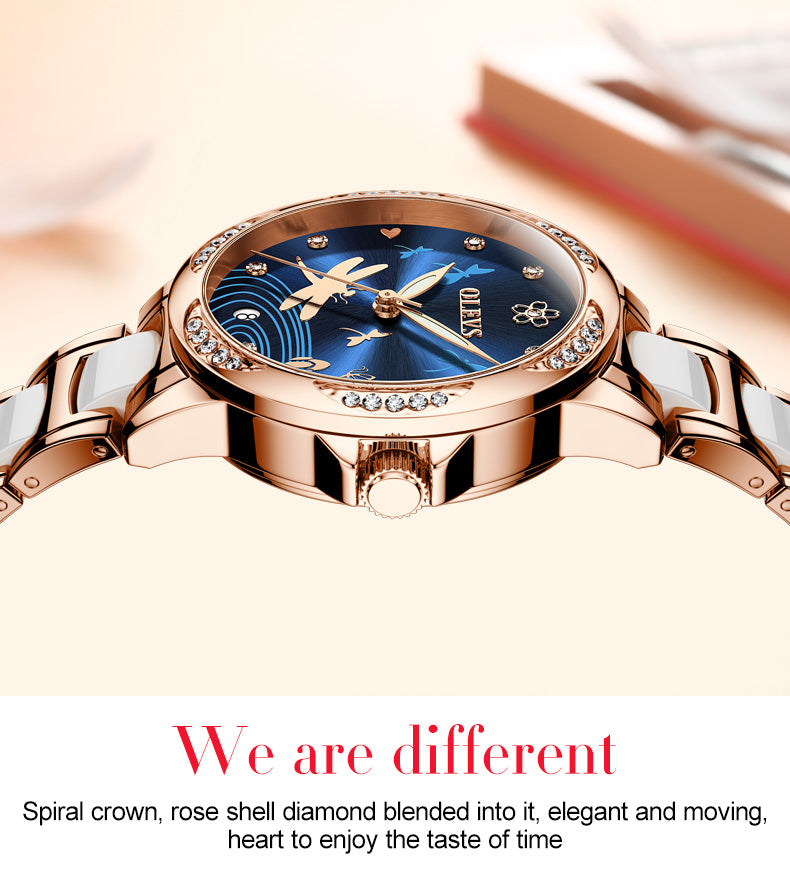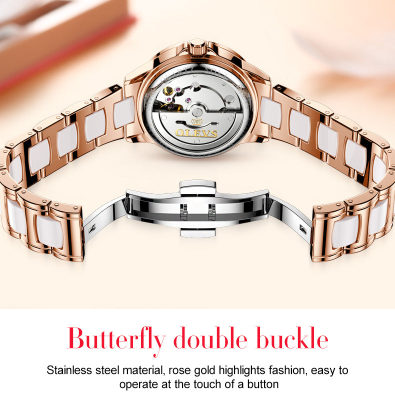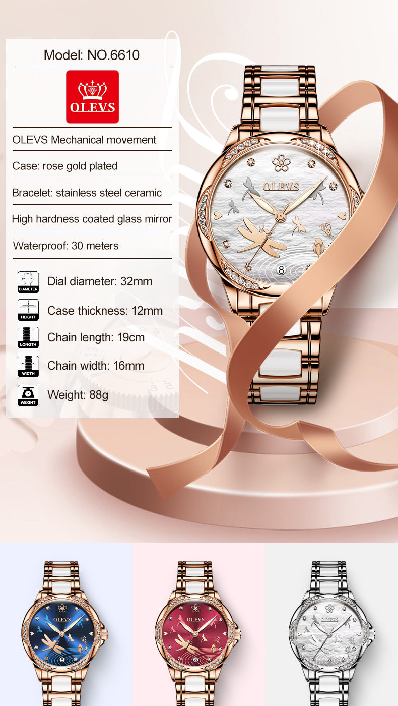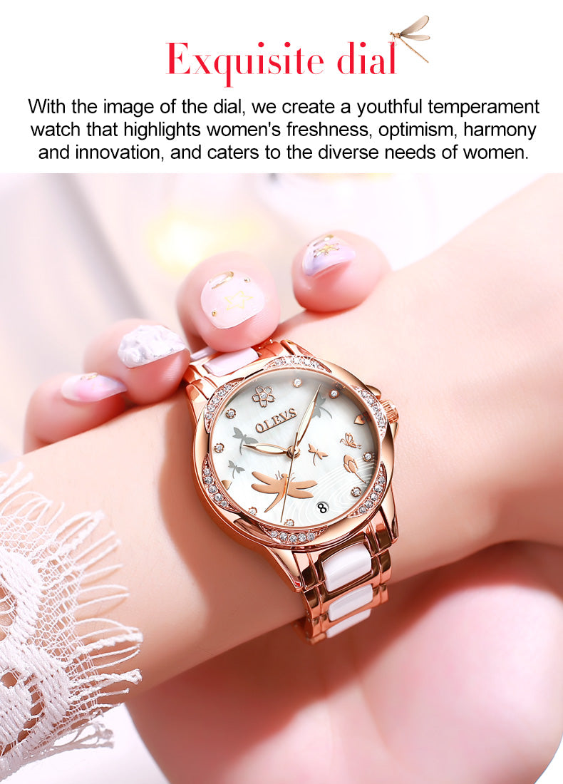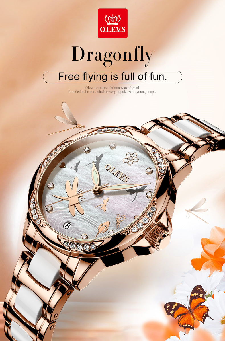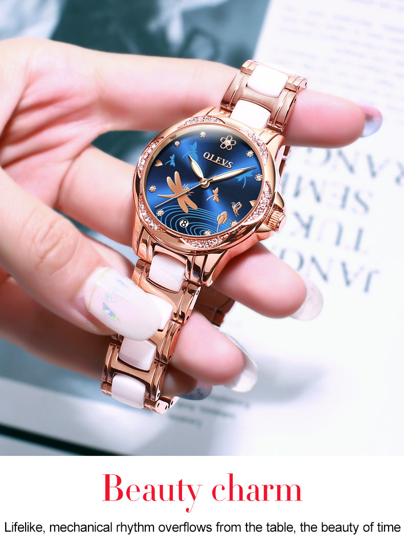 Automatic Mechanical Watch Ceramic Steel Band Waterproof Ladies Dragonfly Watch