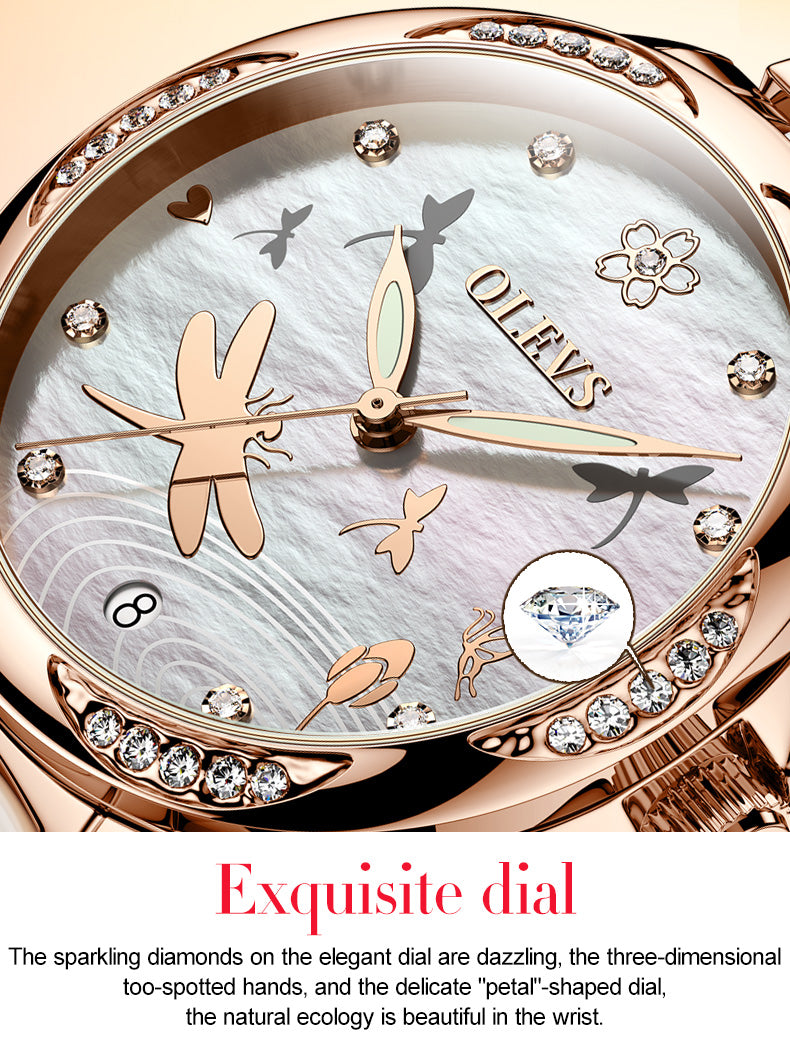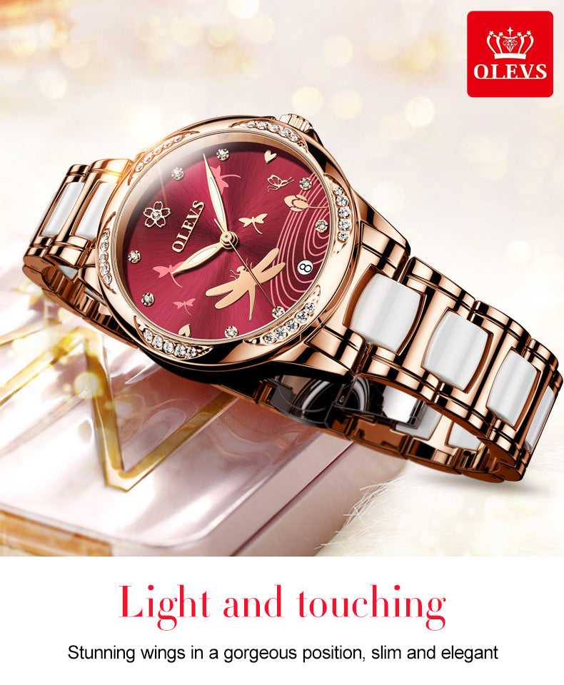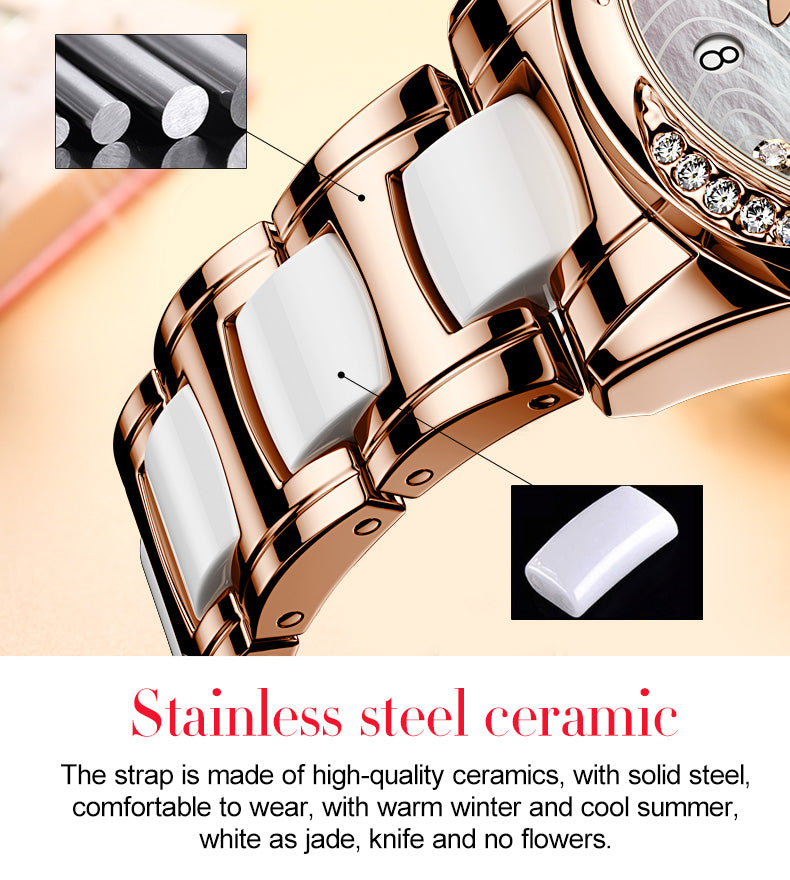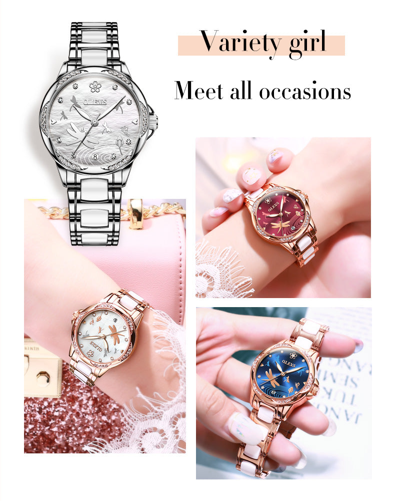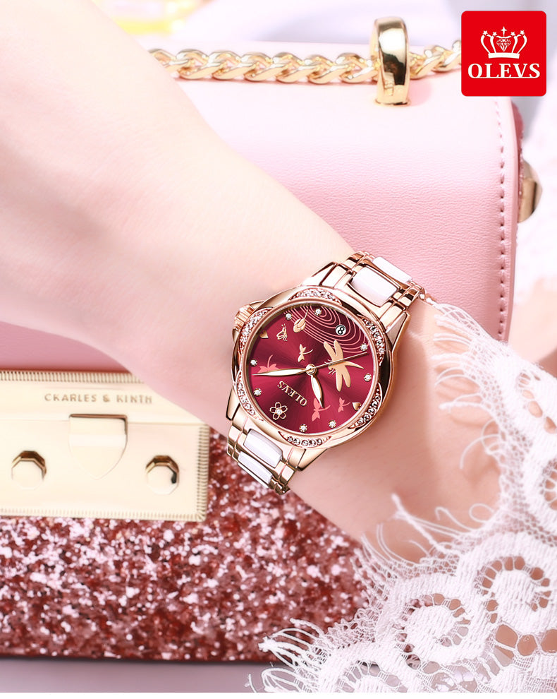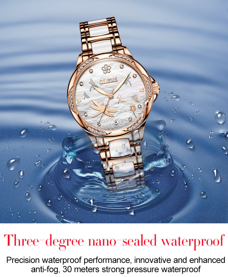 Automatic Mechanical Watch Ceramic Steel Band Waterproof Ladies Dragonfly Watch