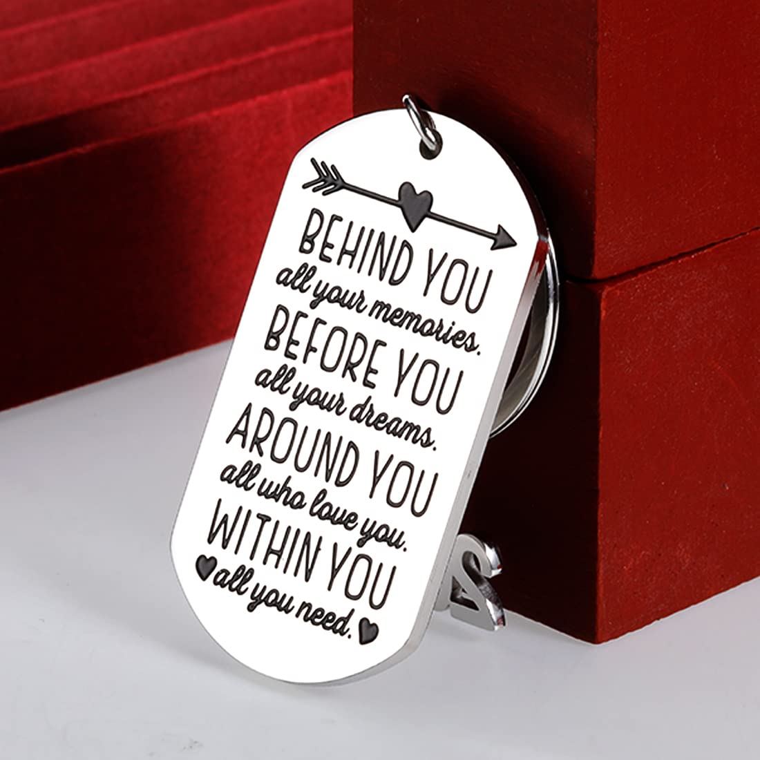 Behind You Gifts Keychain All Your Memories Inspirational Gift Key Ring For Best Friend Boys Girls