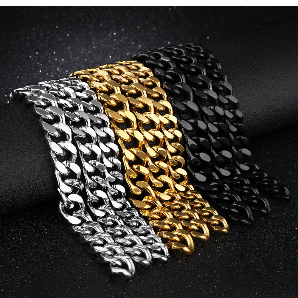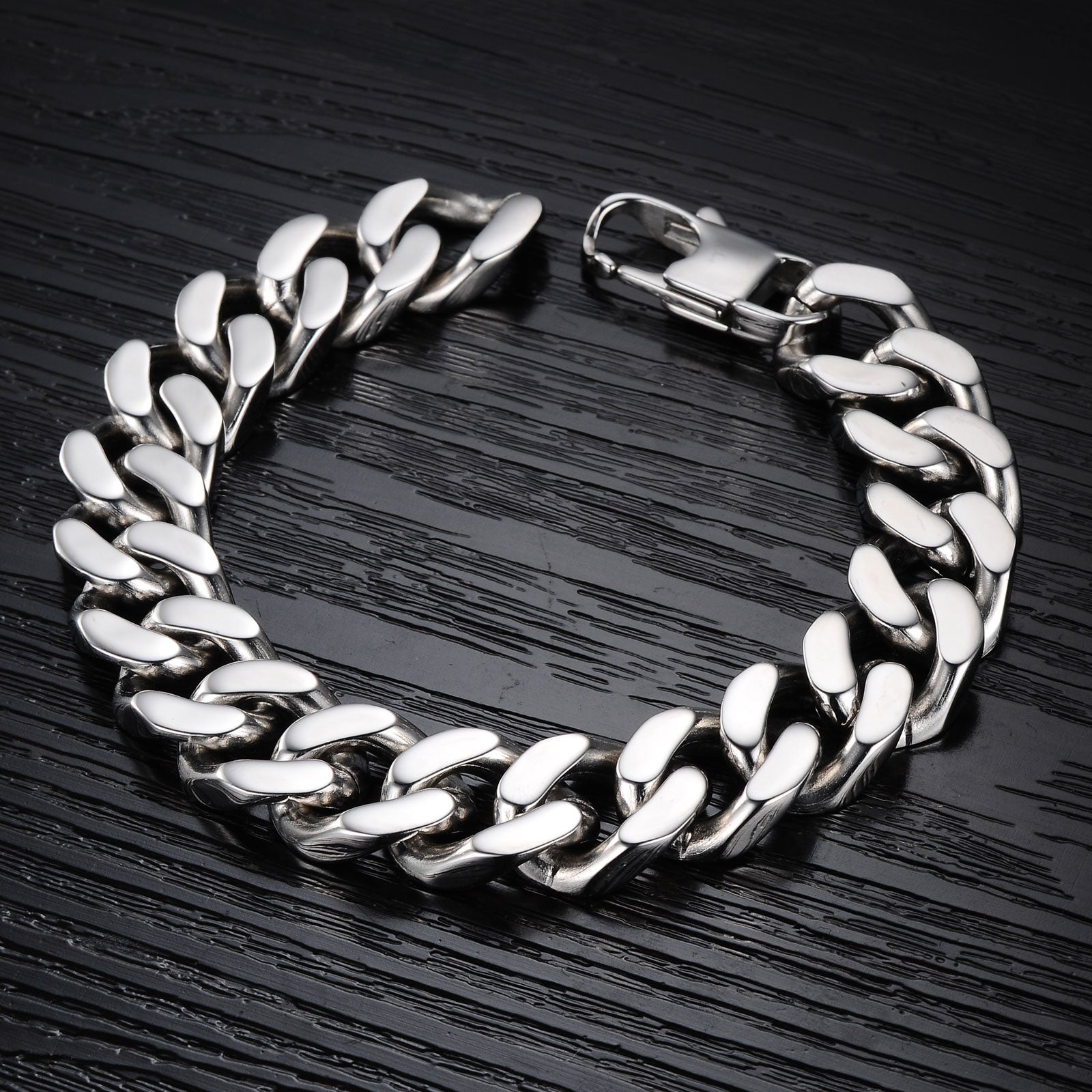 Classic Titanium Steel Thick And Wide Flat Snake Bone Chain Men's Business Bracelet