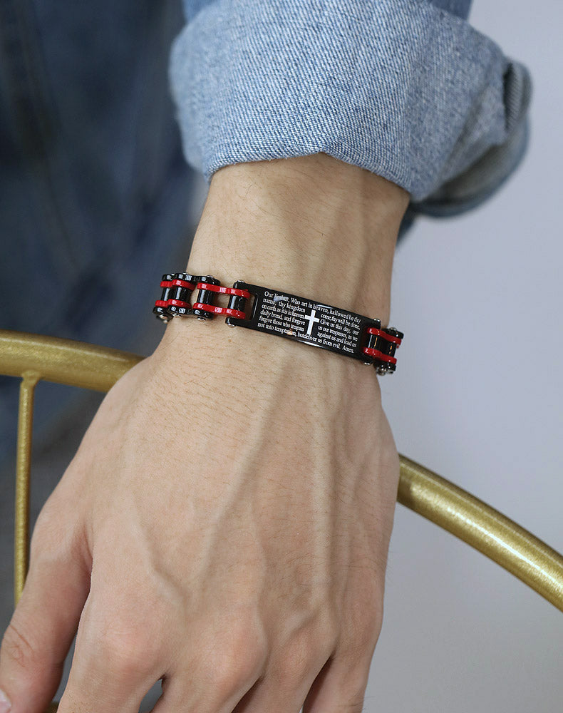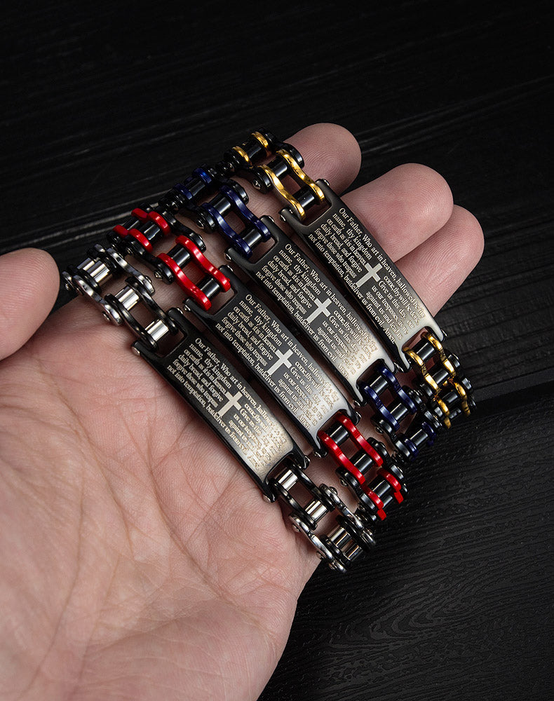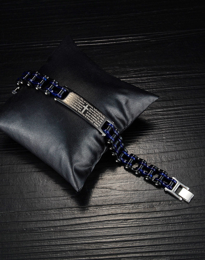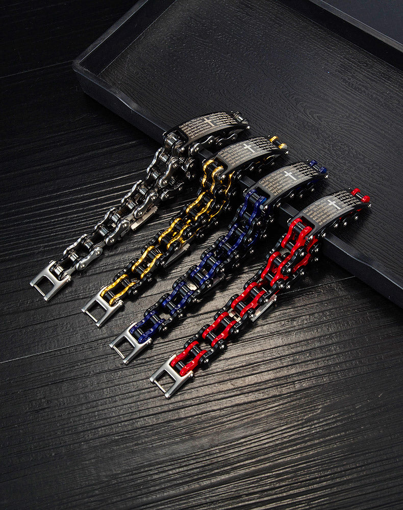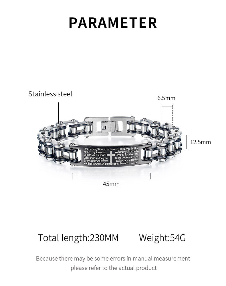 Creative Popular Men's Titanium Steel Motorcycle Chain Religious Cross Bracelet