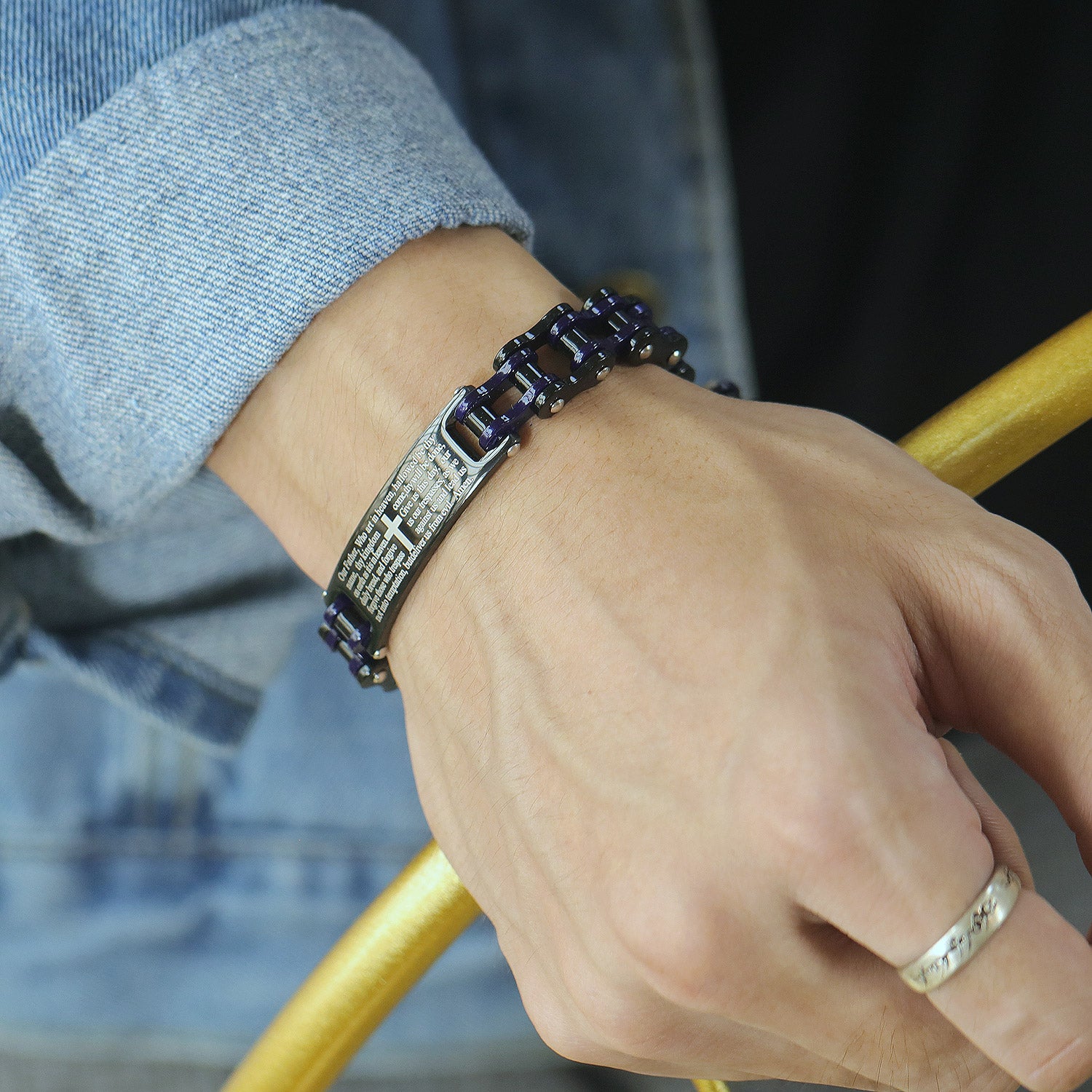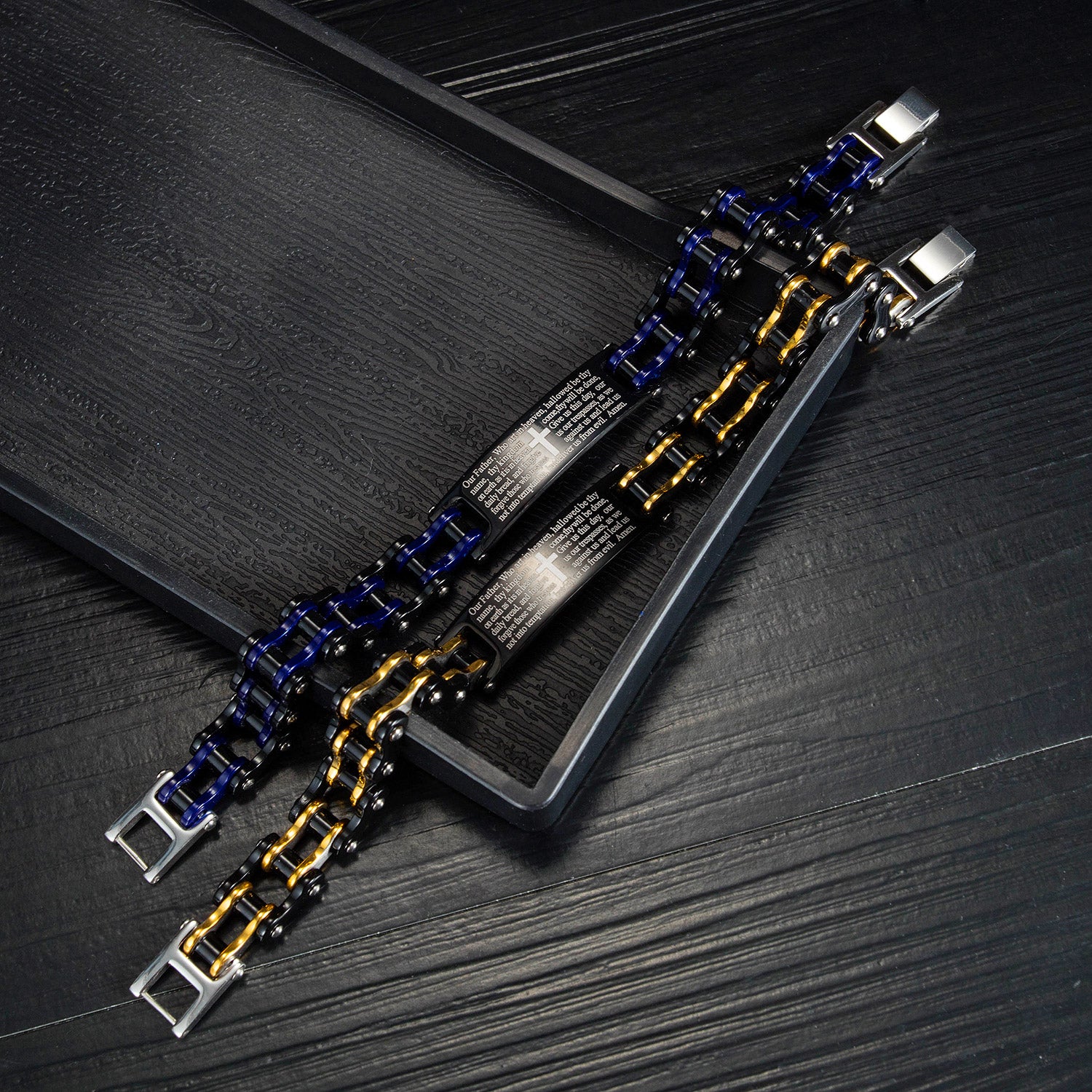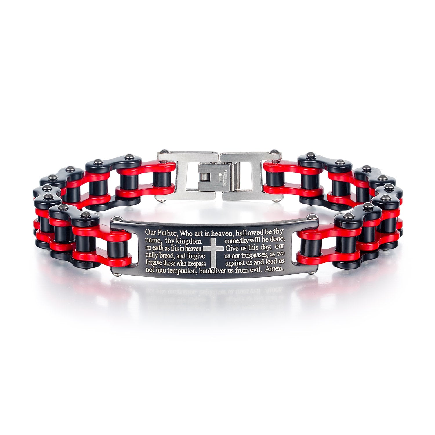 Creative Popular Men's Titanium Steel Motorcycle Chain Religious Cross Bracelet