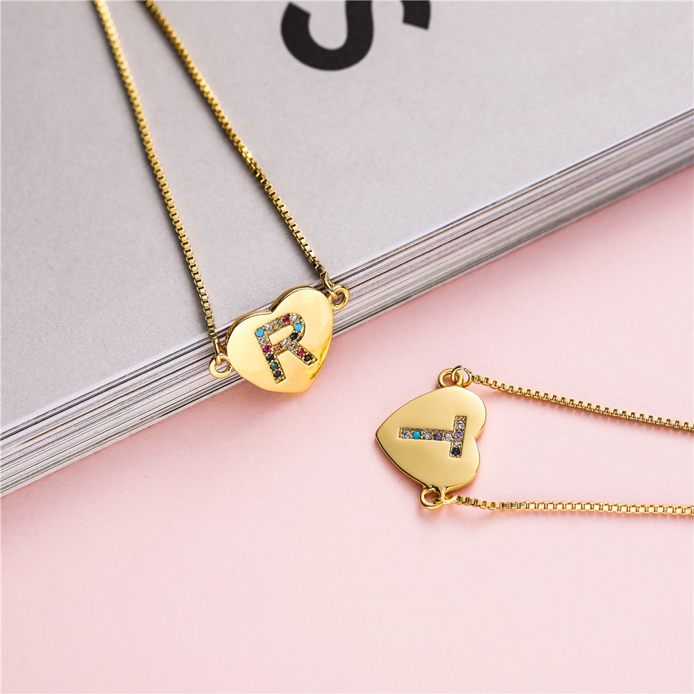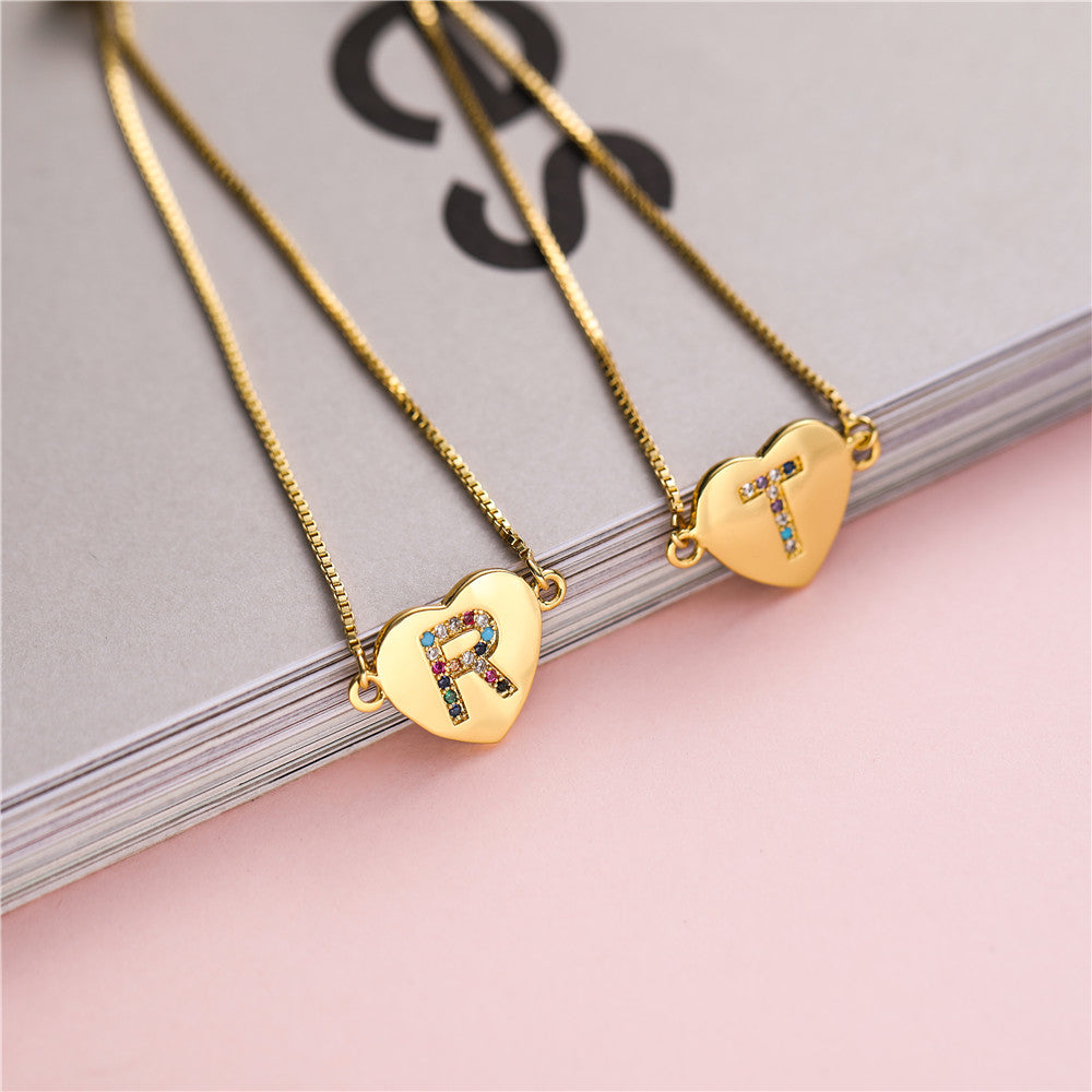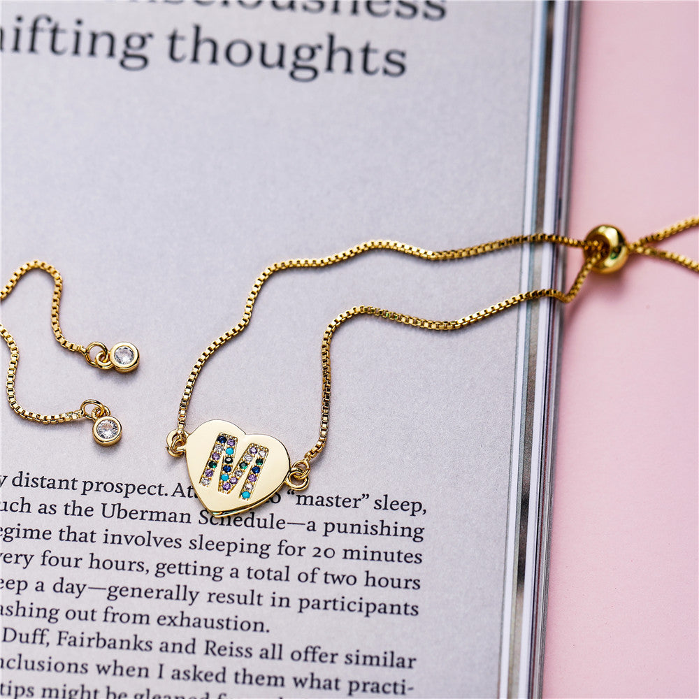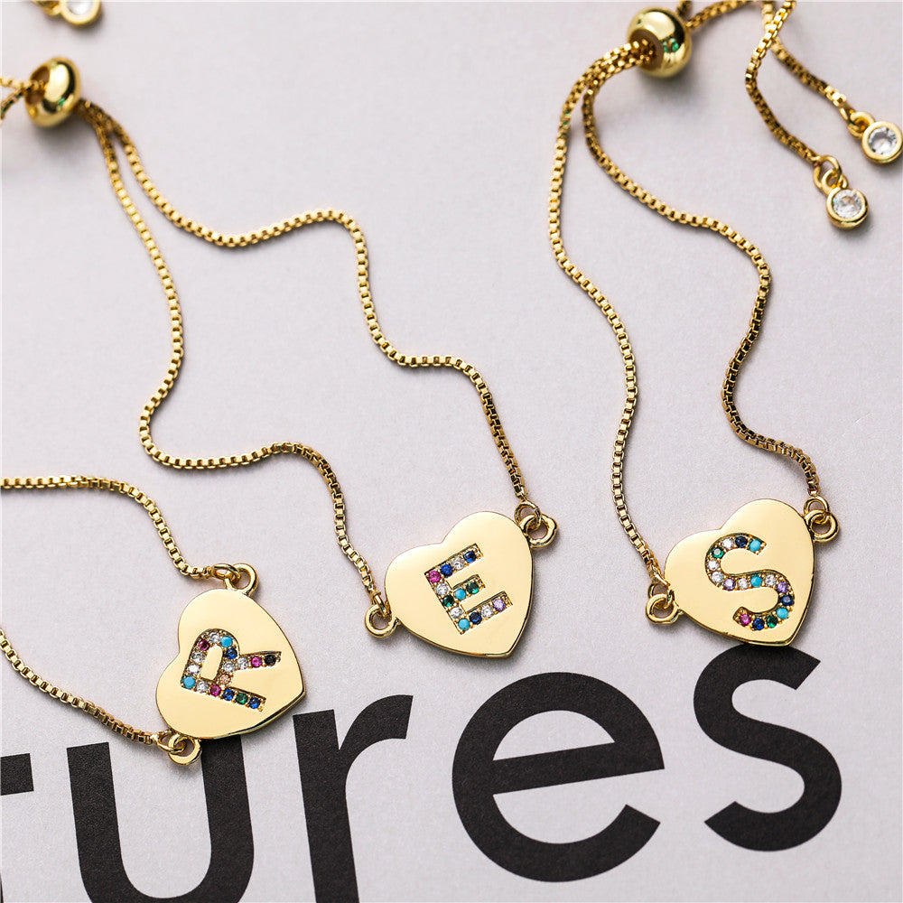 Cubic Zirconia 26 Alphabet Letter Charm Bracelet Femme Copper A-Z Initial Chain name Bracelets for Women Jewelry Adjustable