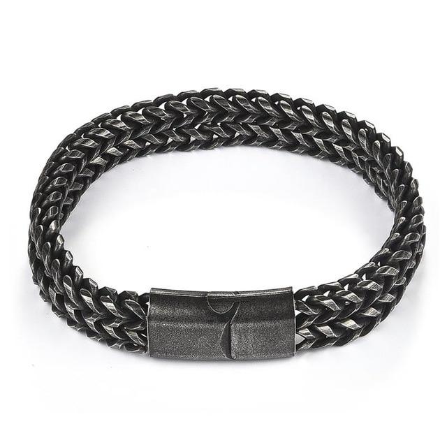 Double-Width Franco Antiqued Steel Chain Bracelet
