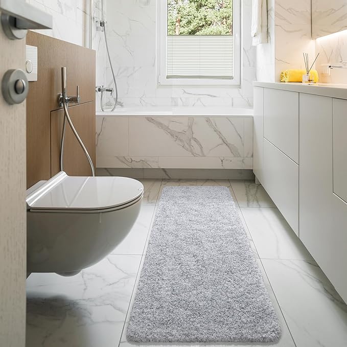 Our fluffy bathroom rug is made of microfiber, so you can feel its softness when you step on this bath rug.