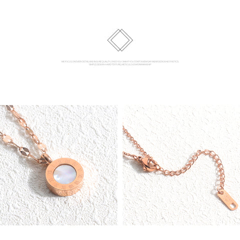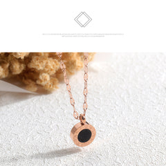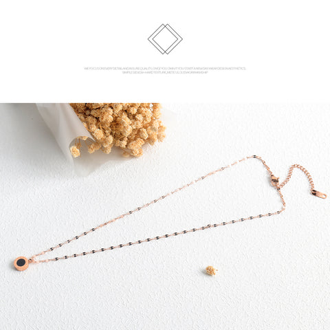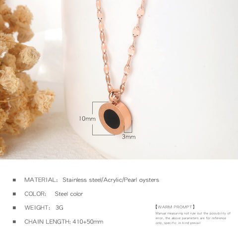 European and American fashion Roman numeral necklace, double-sided black and white shell clavicle chain titanium steel jewelry for women