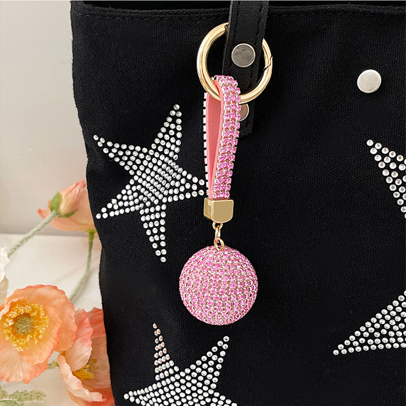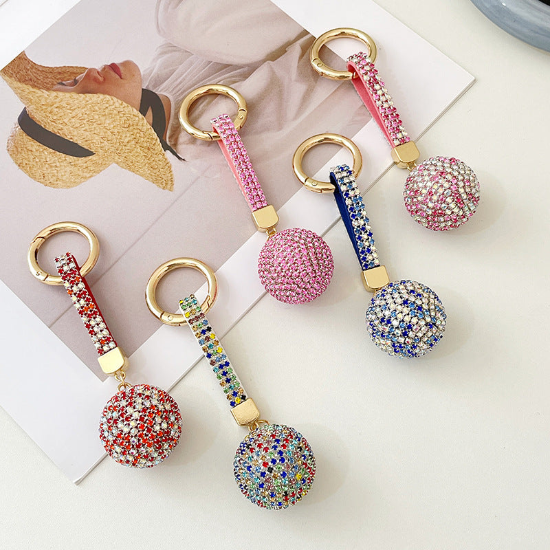Fashion Round Ball Keychain Rhinestone Backpack Hanging Decoration Car Key Pendant