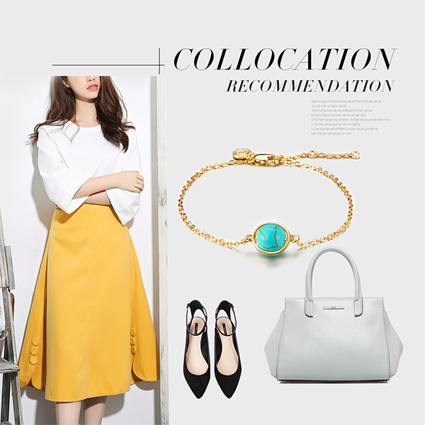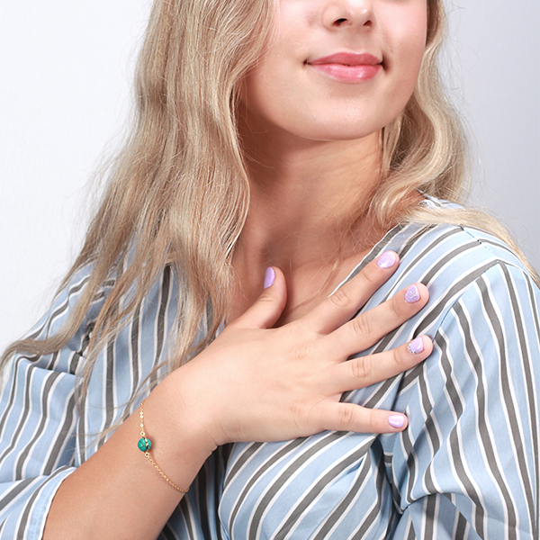 Our newest Golden Strand Turquoise Bracelet is the perfect summer accessory with its beautiful golden hues and subtle pop of color! This bracelet features a 925 sterling silver chain with a gold plate and a genuine turquoise round stone.