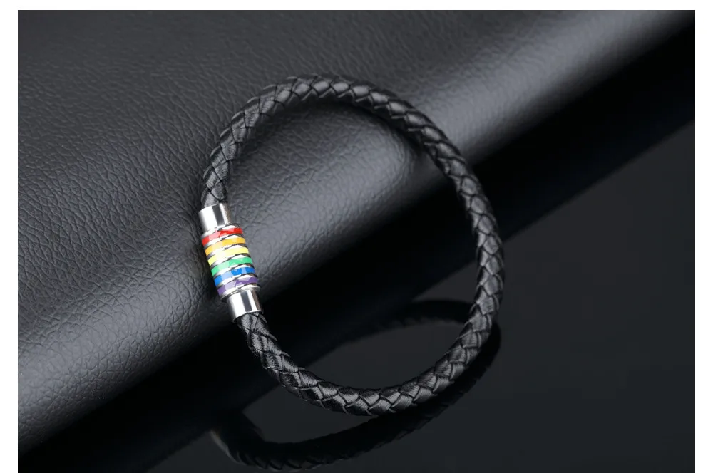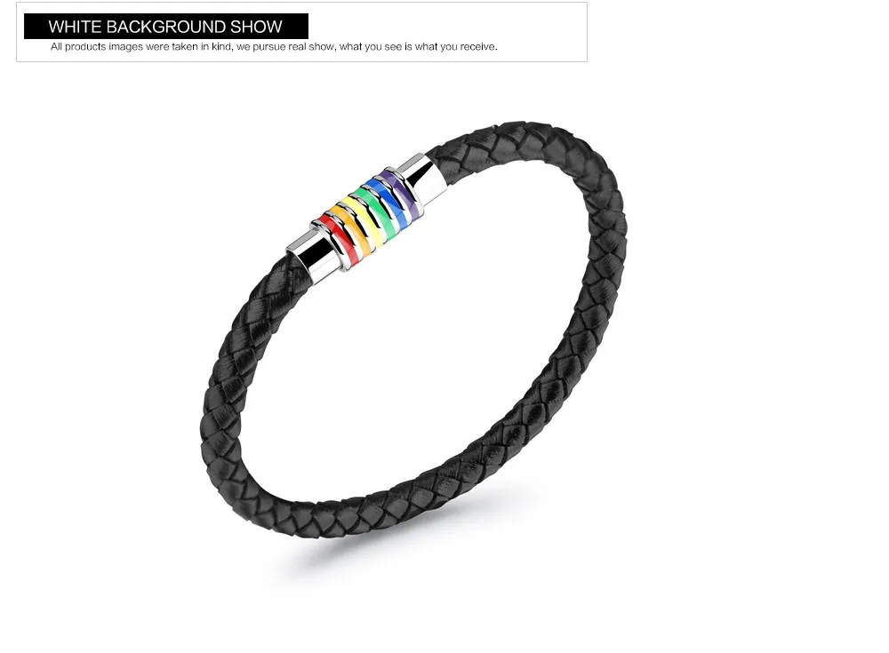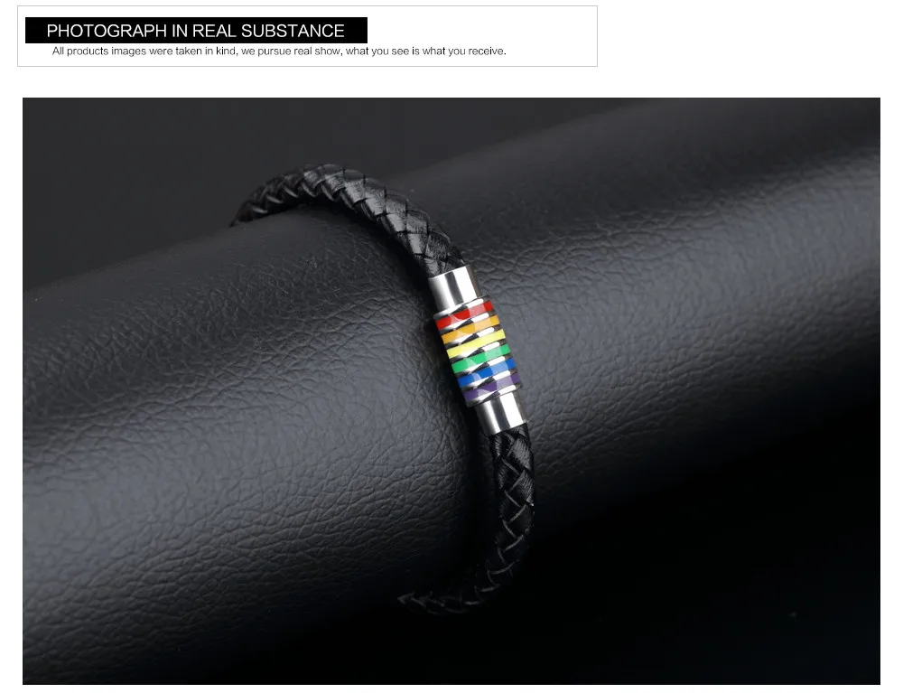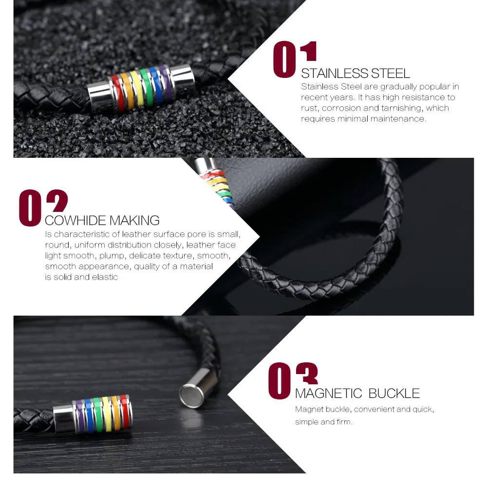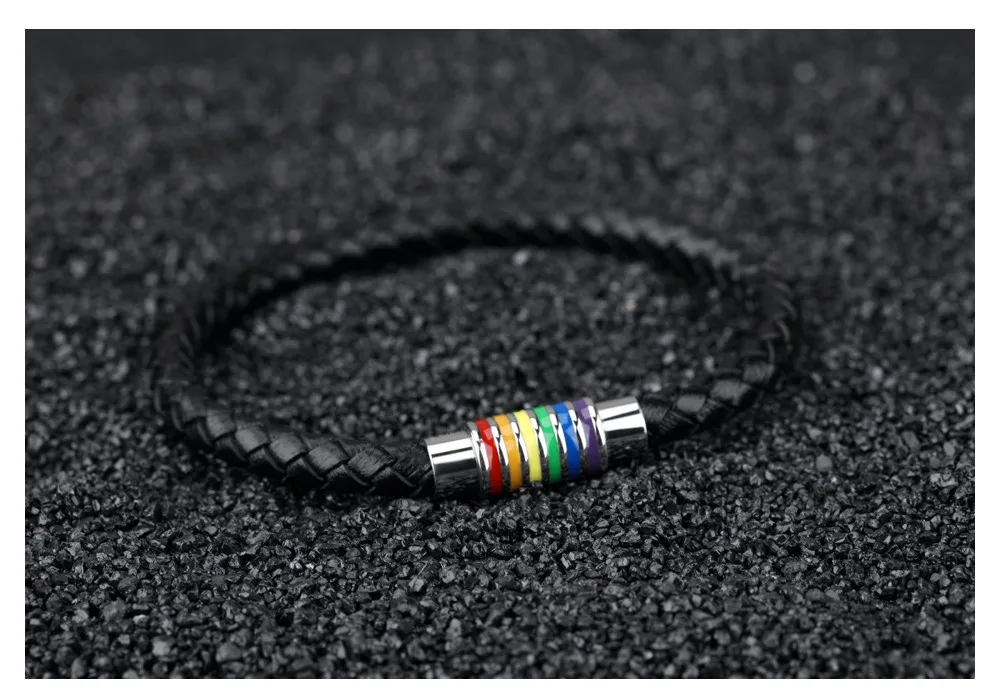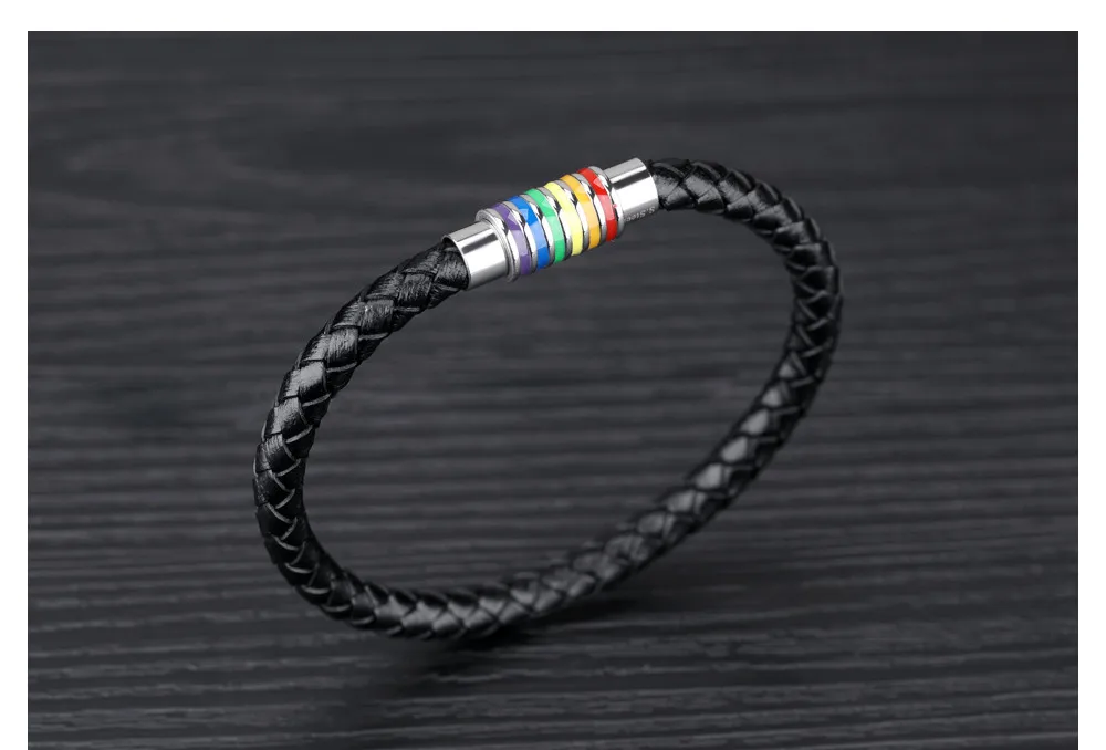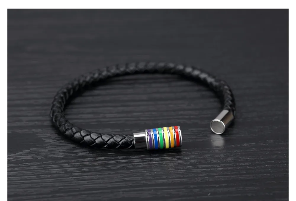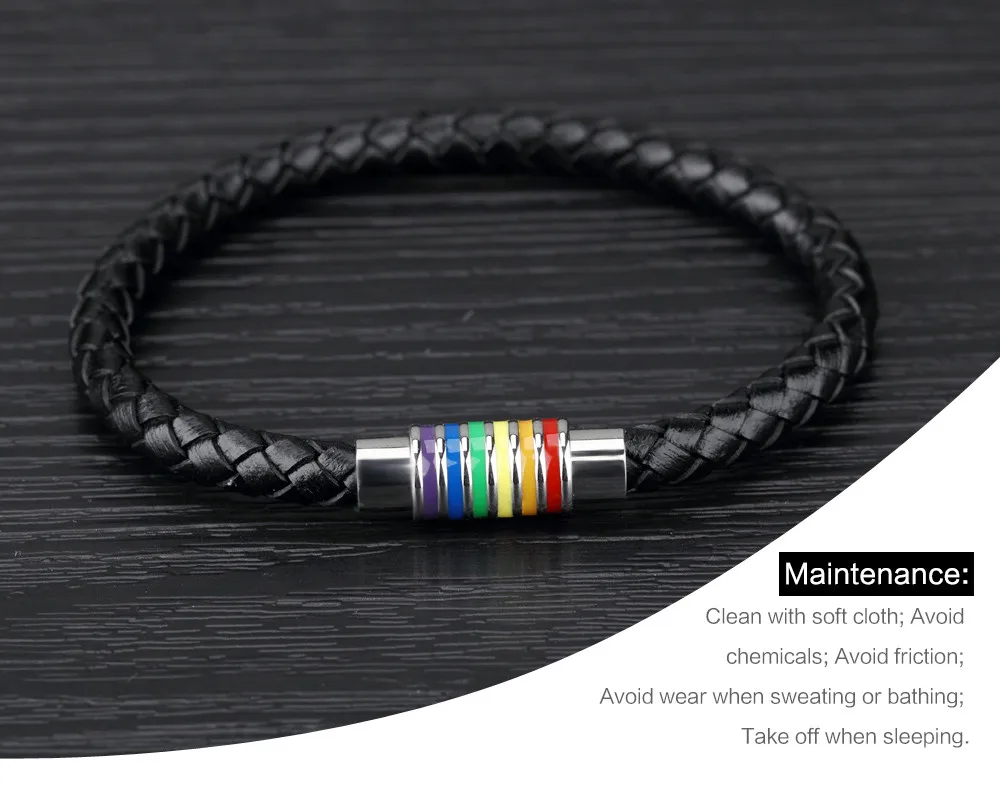 Handmade Leather Woven Charm Bracelet Fashion Gay Pride Stainless Steel Bracelets Vintage Men Jewelry Wristband