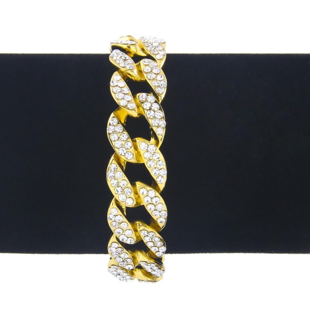Hip Hop Bracelet- Iced Out 15mm Bling Full Rhinestone Cuban Link Chain
