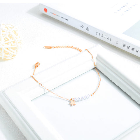 Japanese and Korean temperament five-pointed star pearl titanium steel anklet