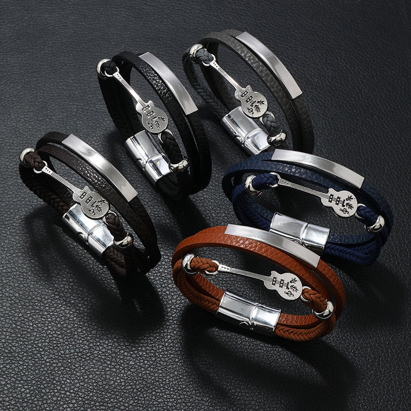 Leather Guitar Bracelet Punk Style Multi-Layer Woven Leather Cord