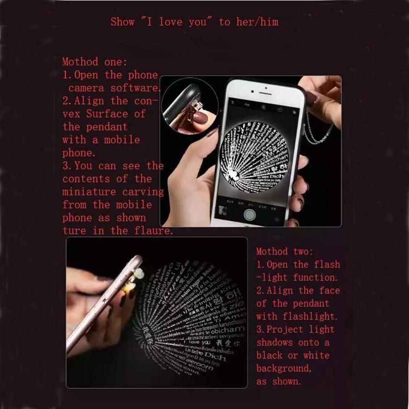 Just illuminating the pendant with light, 100 languages of I love you will be displayed. Great gifts for girlfriend, mom, wife, daughter, best friend, etc. Ideal Birthday Gifts, Anniversary Gifts, Christmas Gifts, Graduation Gifts, Mother's Day Gifts, Valentine's Day Gifts, etc, or just as a surprise to remind that special one how much you care.