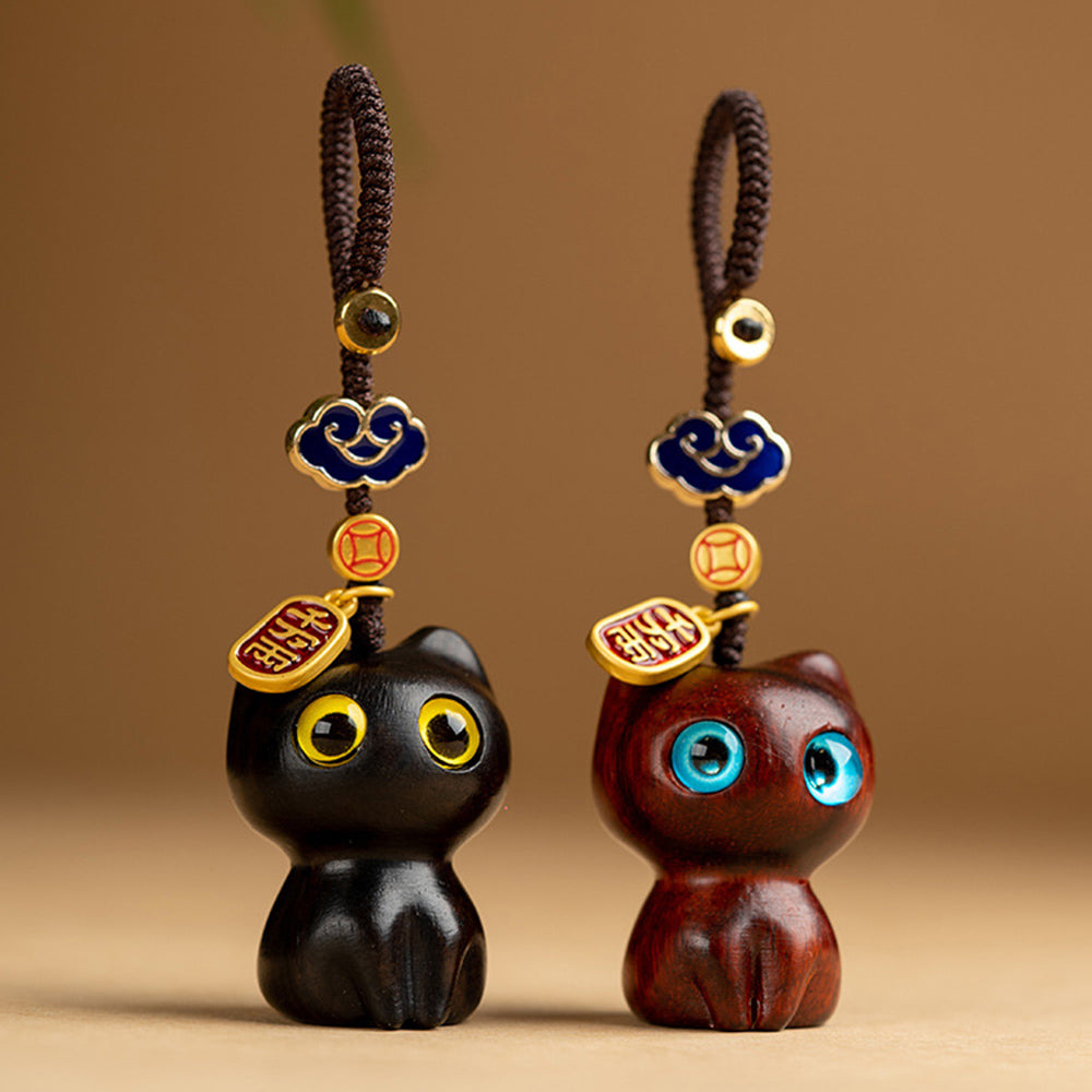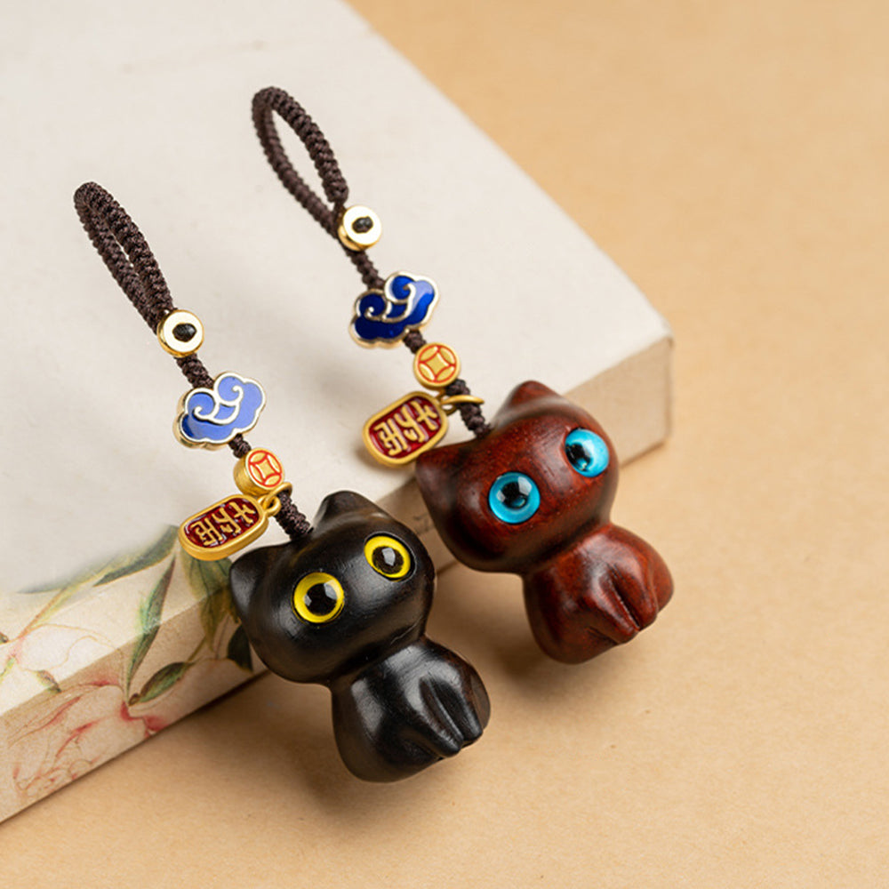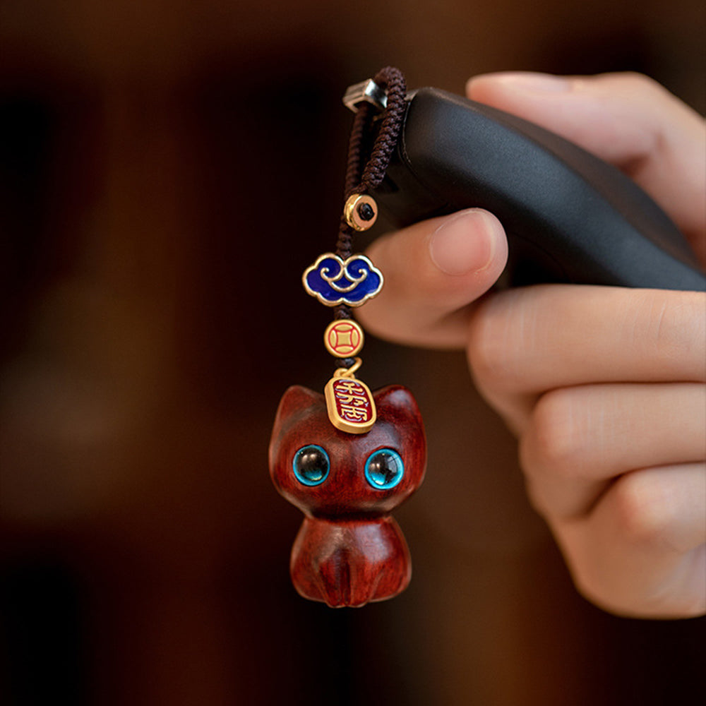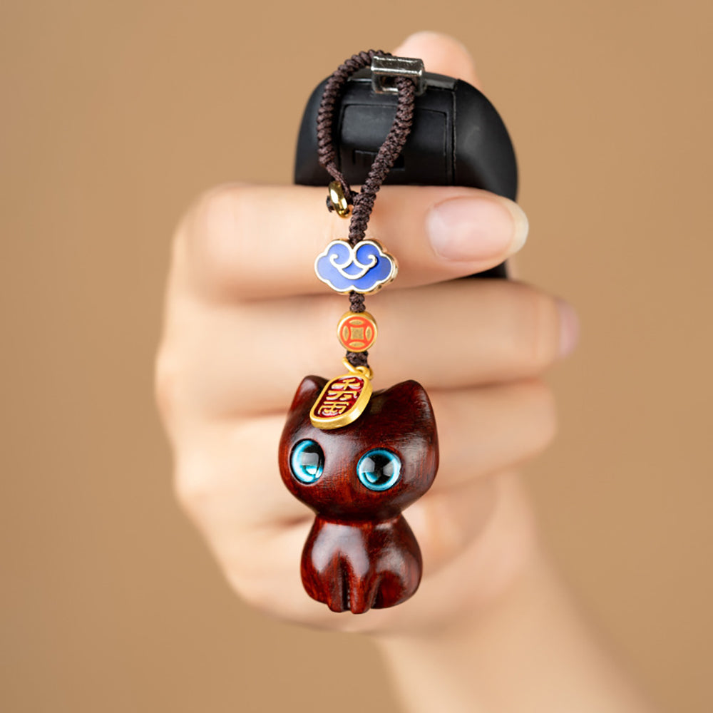 Lucky Kitty Key Chain Wooden Cat Kitten Chain Wallet Decor Gift