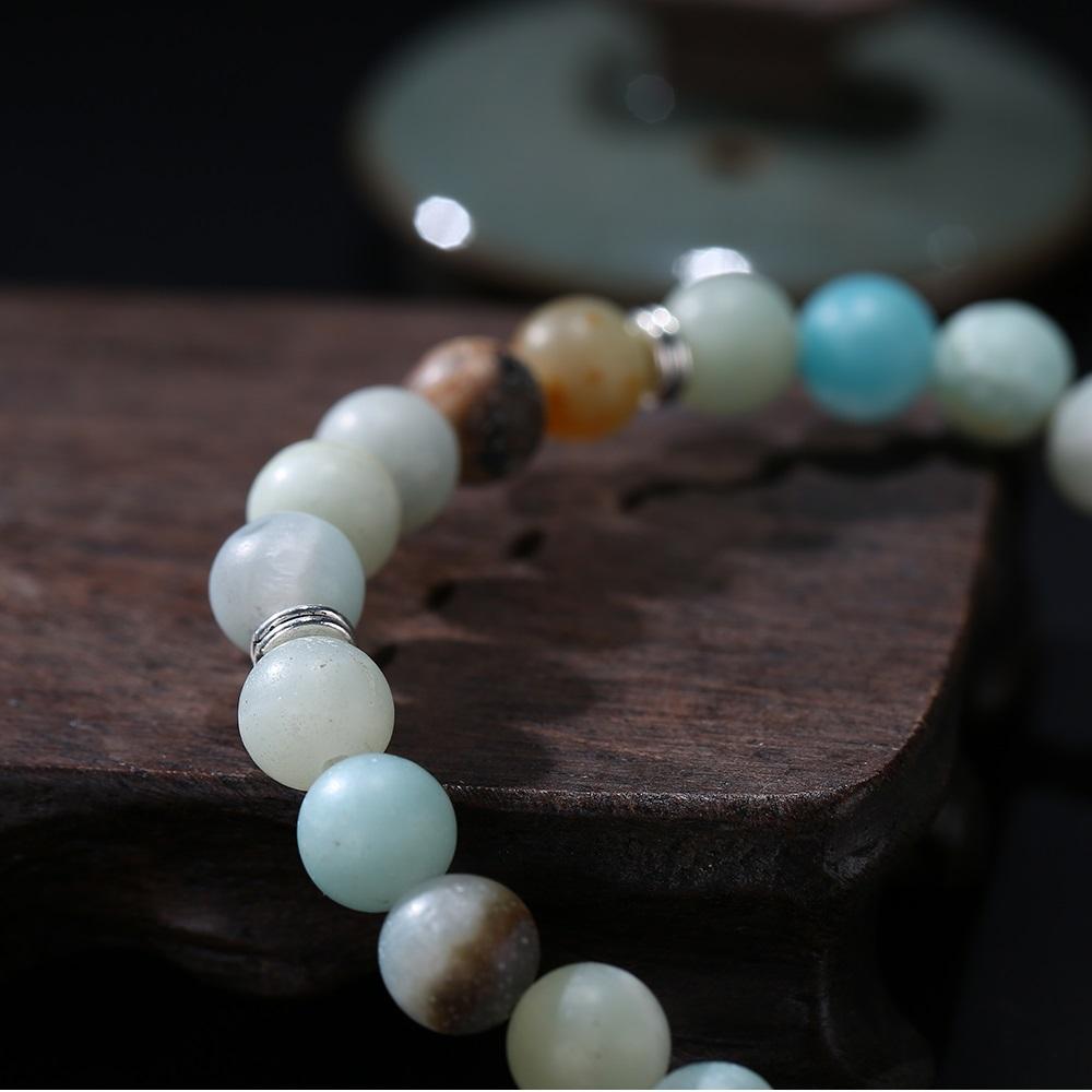 This mala bracelet is made with natural Amazonite Beads with a matte finish handpicked by experts to ensure the highest quality of this product and paired with a beautiful lotus coin charm.