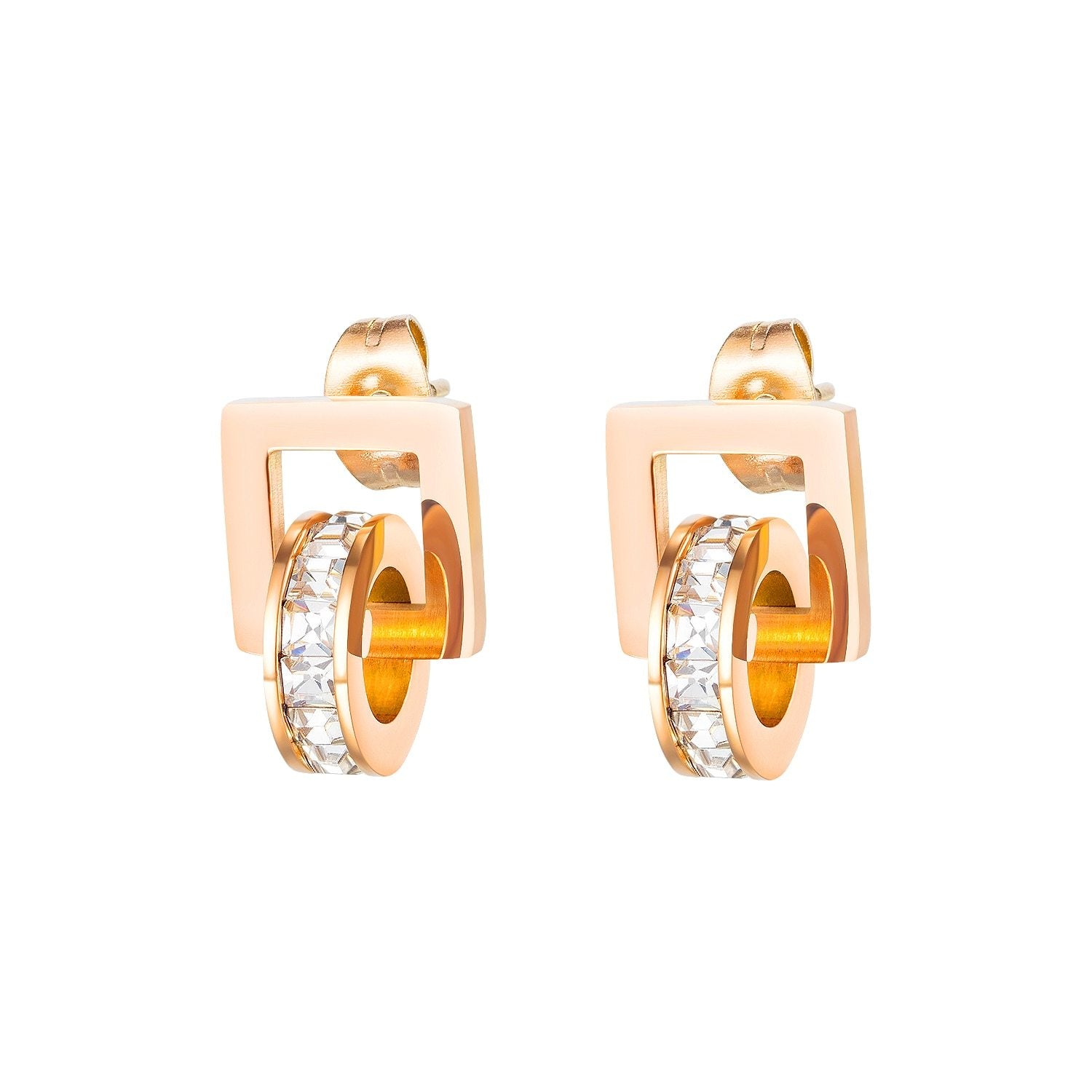 Women Geometry Square Round Crystal Stud Earrings Rose Gold Korean Charm Fashion Jewelry