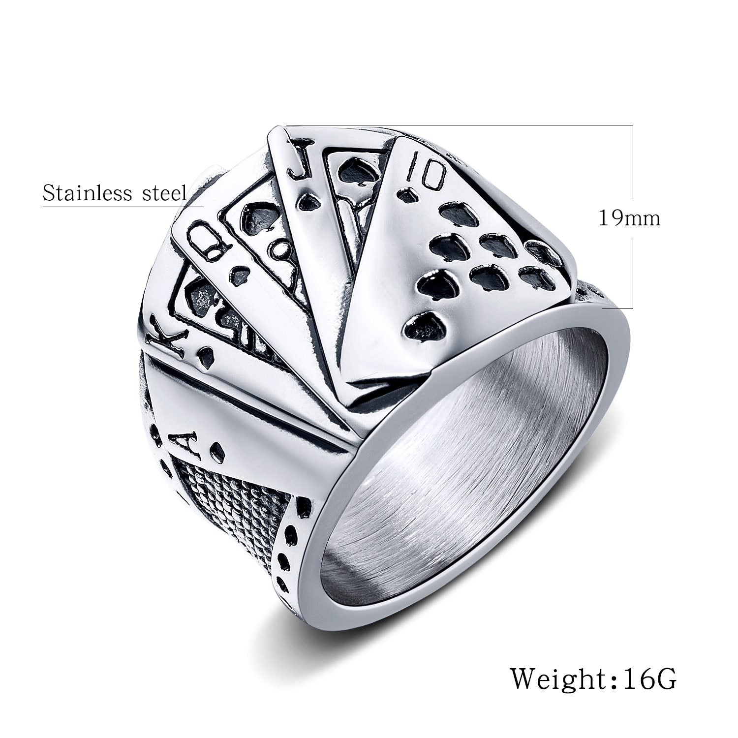 Punk Black Poker Ring for Men Stainless Steel Casting Finger Ring Cool Jewelry Gift