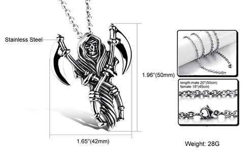 Reaper, sickle, skull, titanium steel casting pendant, domineering men's necklace, Halloween gift