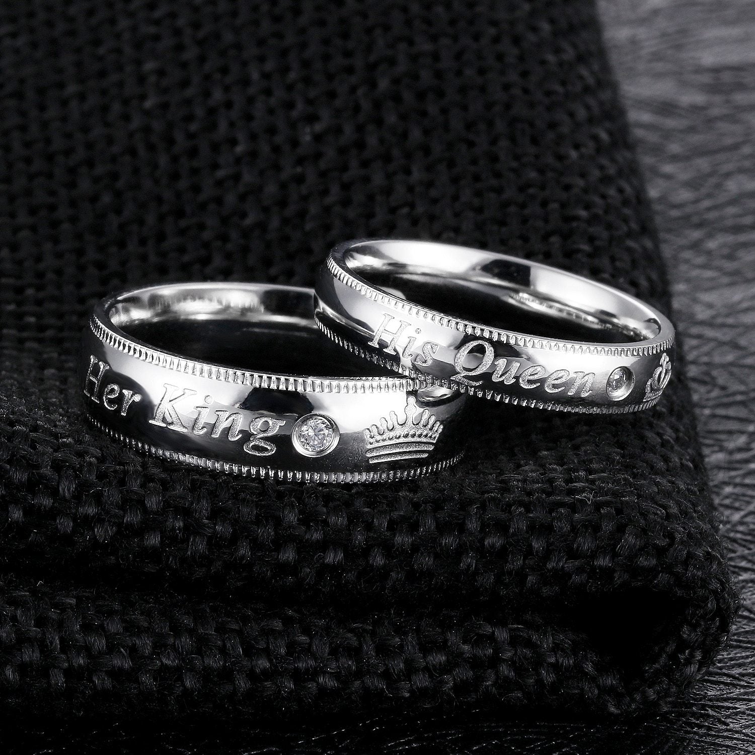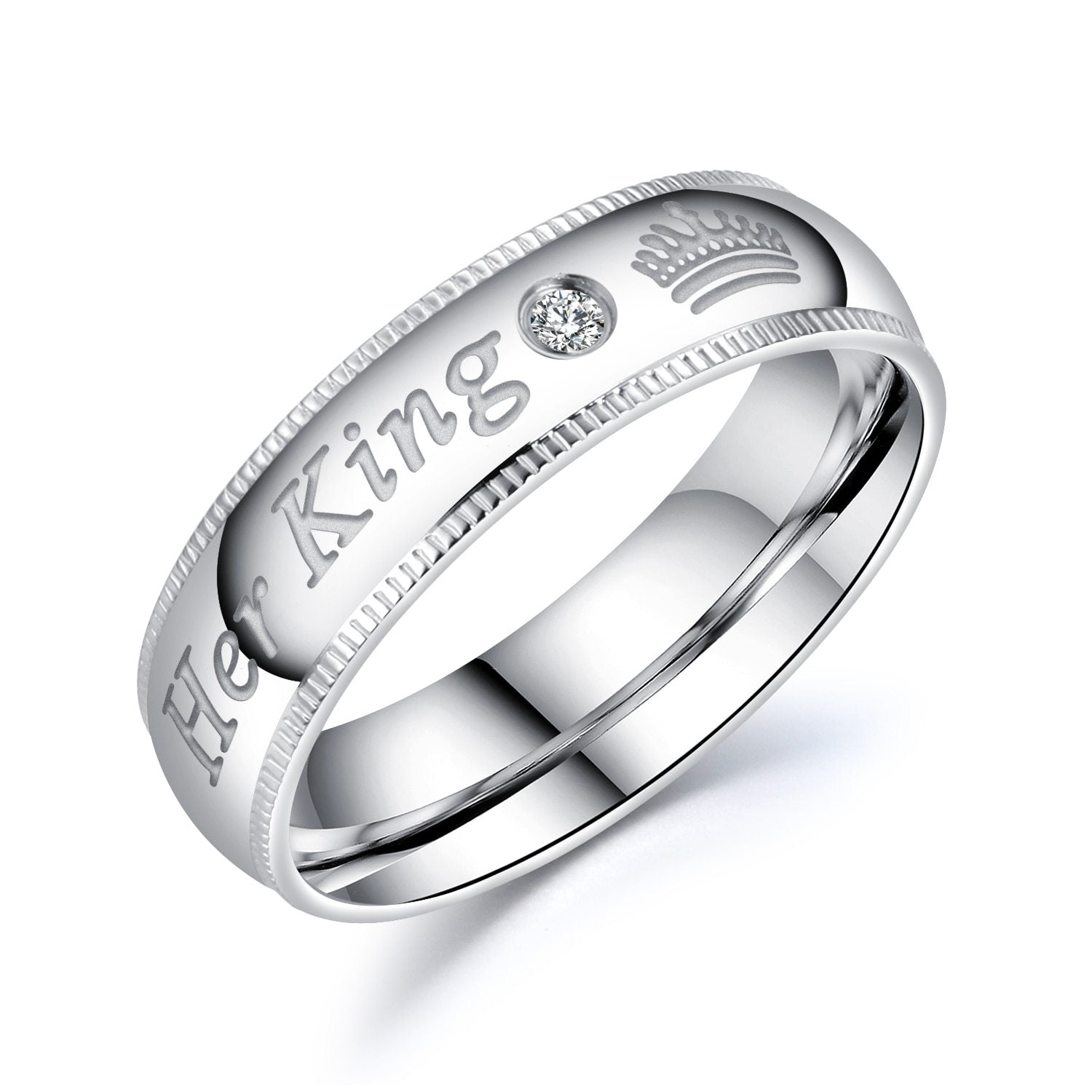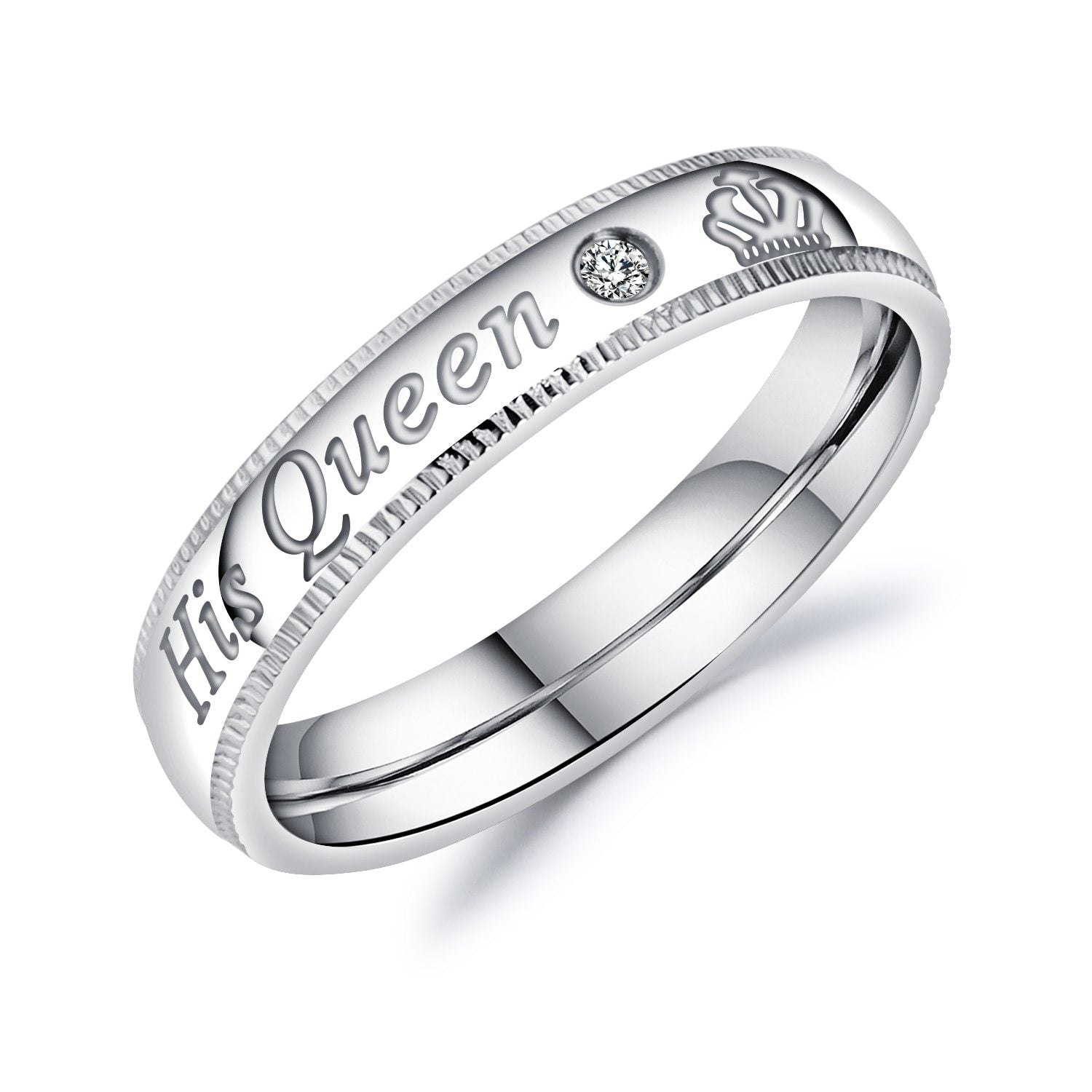 Romantic Couple Rings "Her King His Queen" Stainless Steel Engraving Ring For Lover Best Jewelry Gift