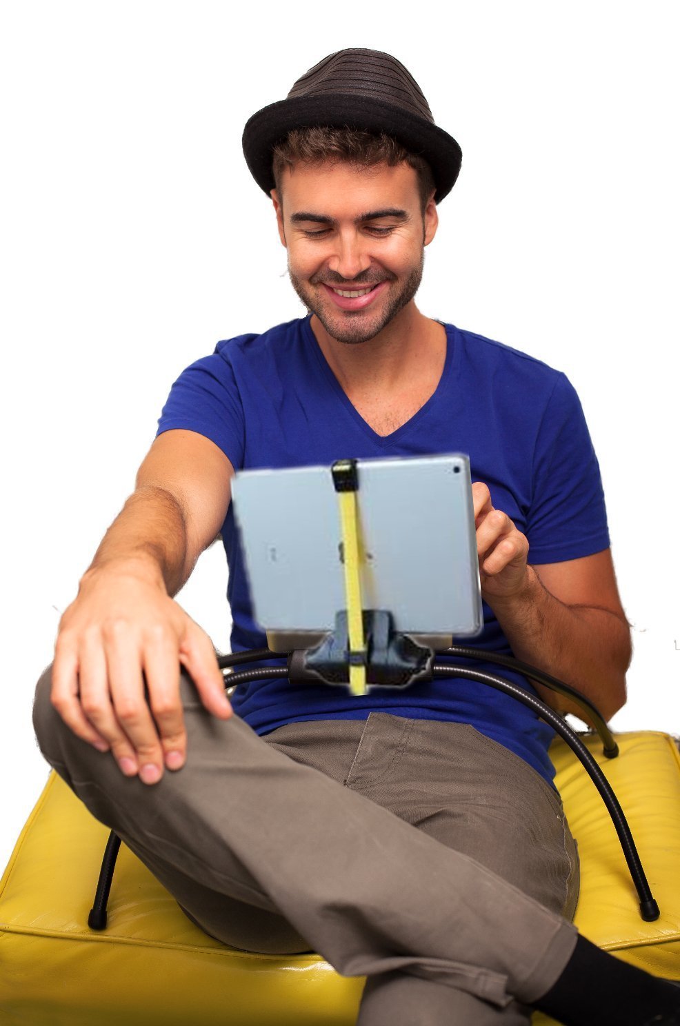 - The cleverly designed holder uses its unique plastic anchor to hang on to mobile phones and tablets up to 13mm thick. The four goose-neck legs can be bent and manipulated so the stand can be positioned wherever you want it.