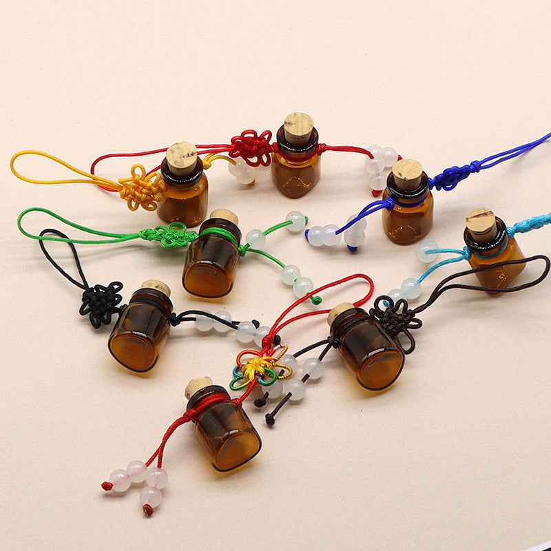 Tawny Glass Bottle Pendant With Chinese Knot Perfume Small Bottle Mobile Phone Chain Incense Ornaments