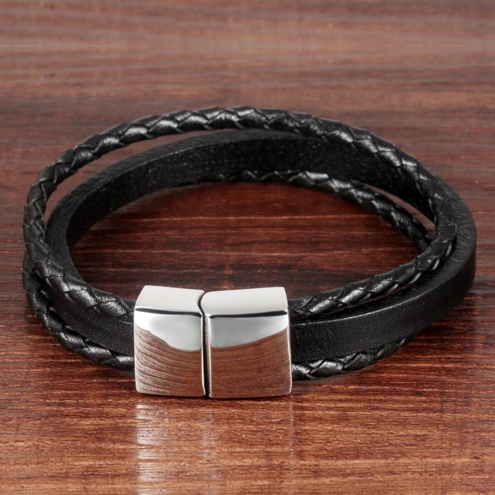 Three-Layers Handmade Man Wrap Bracelets Punk Style Stainless Steel Clasp Cool Men Jewelry 21cm Long