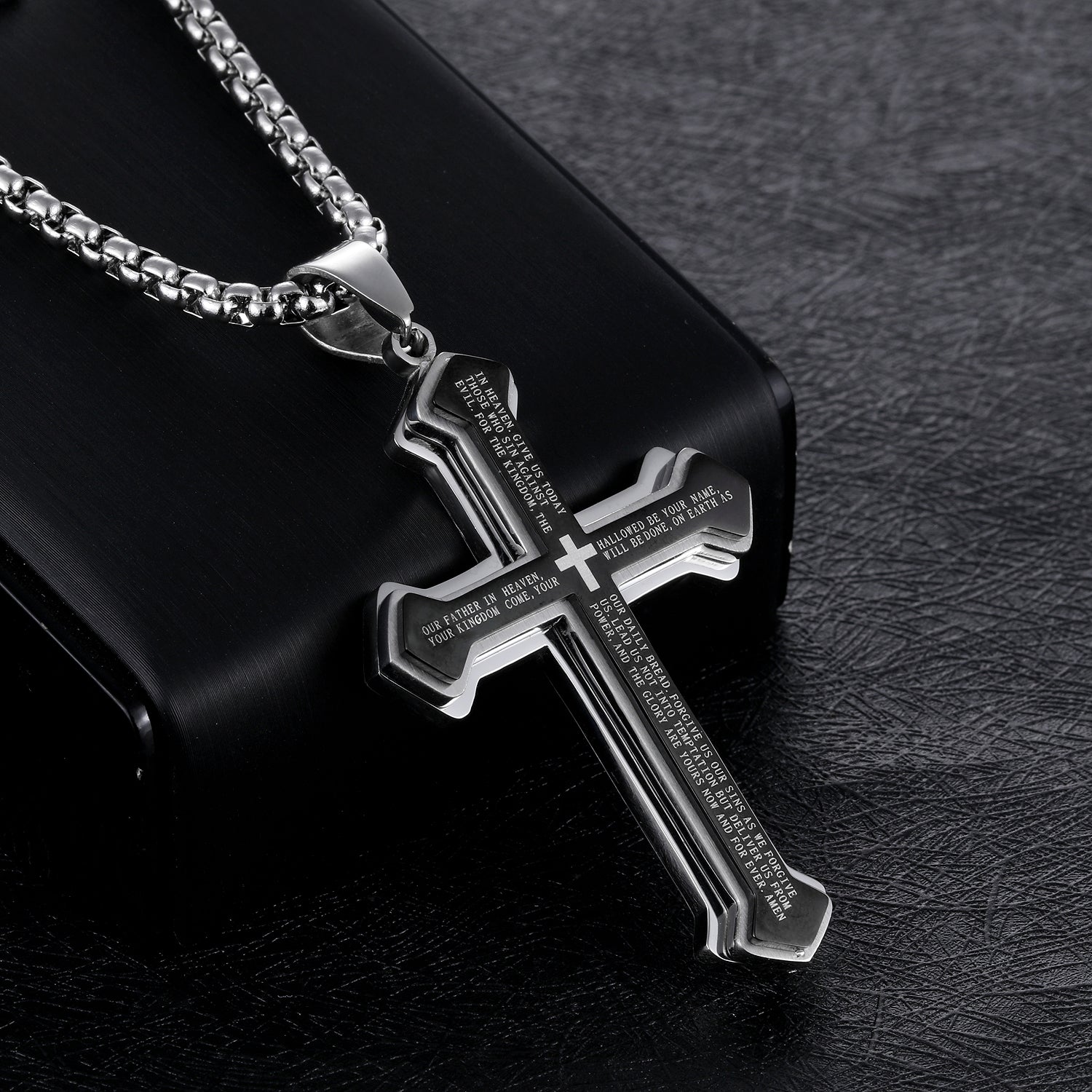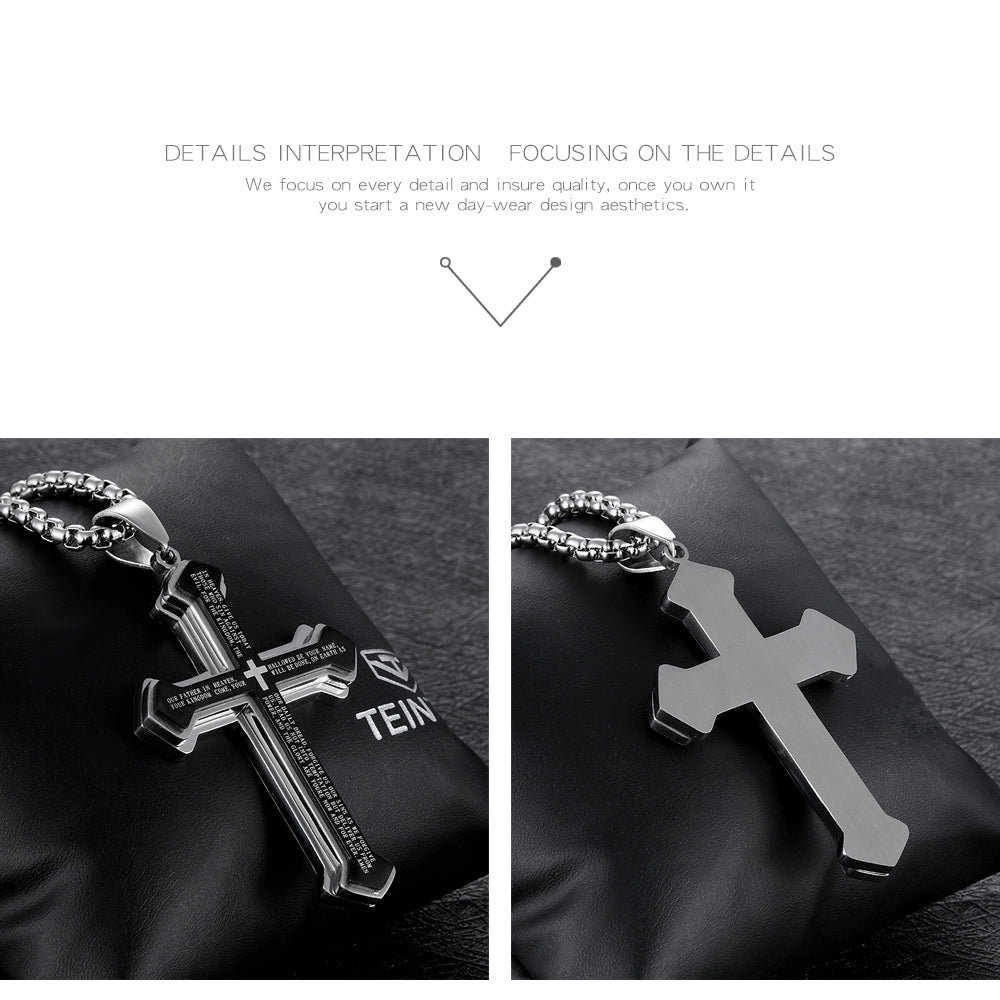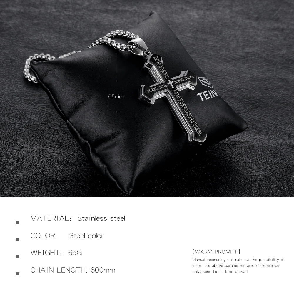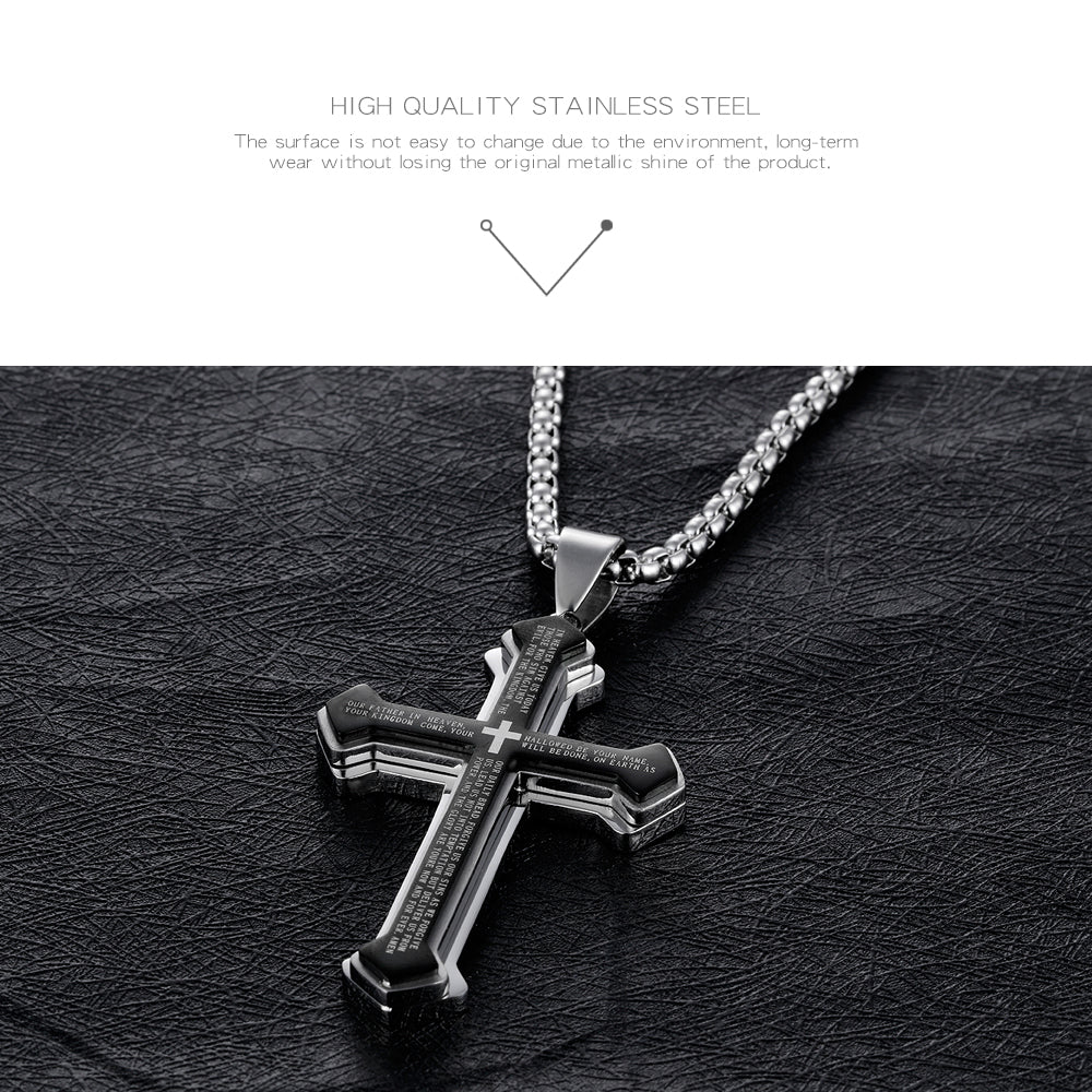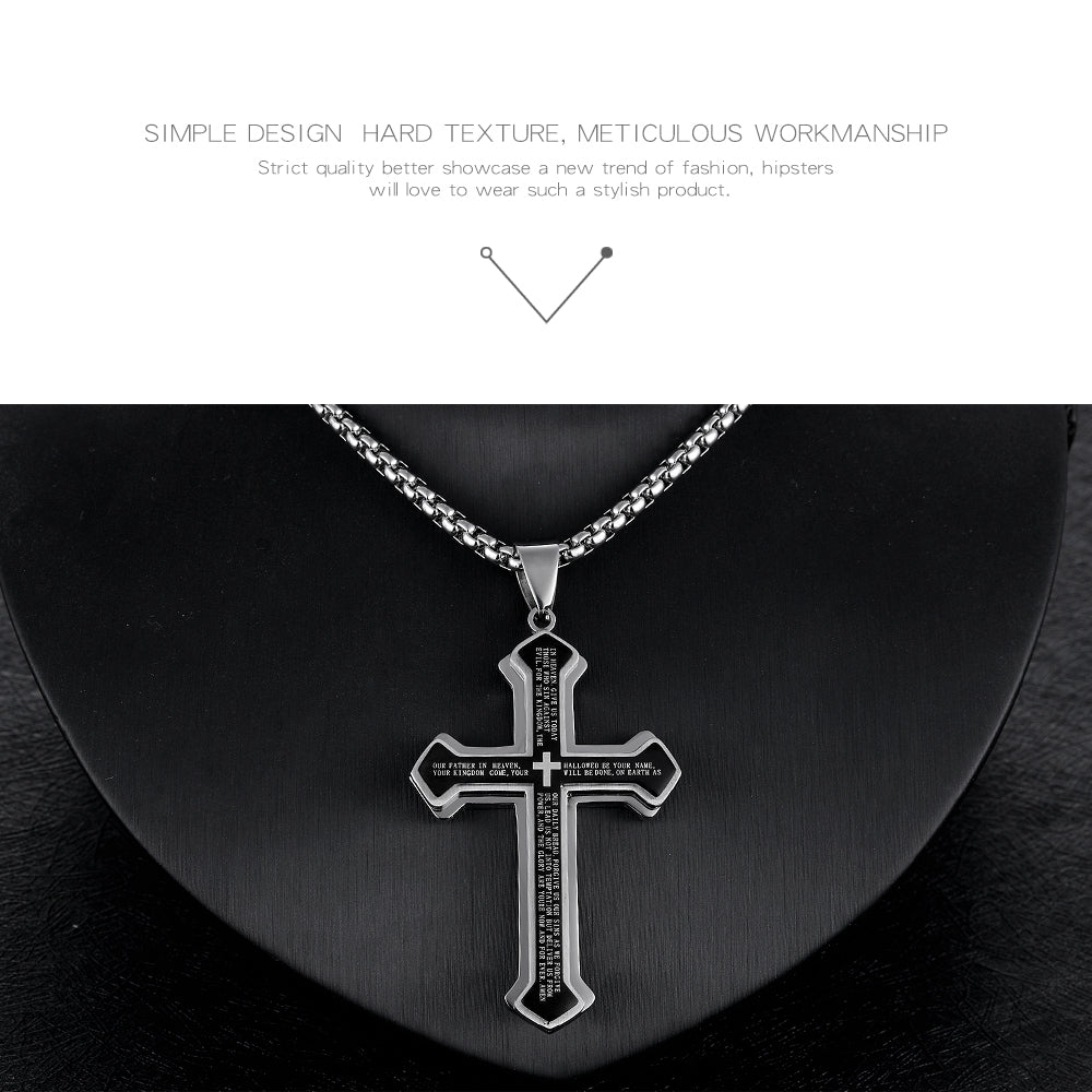 Titanium steel three-layer bible cross men's necklace
