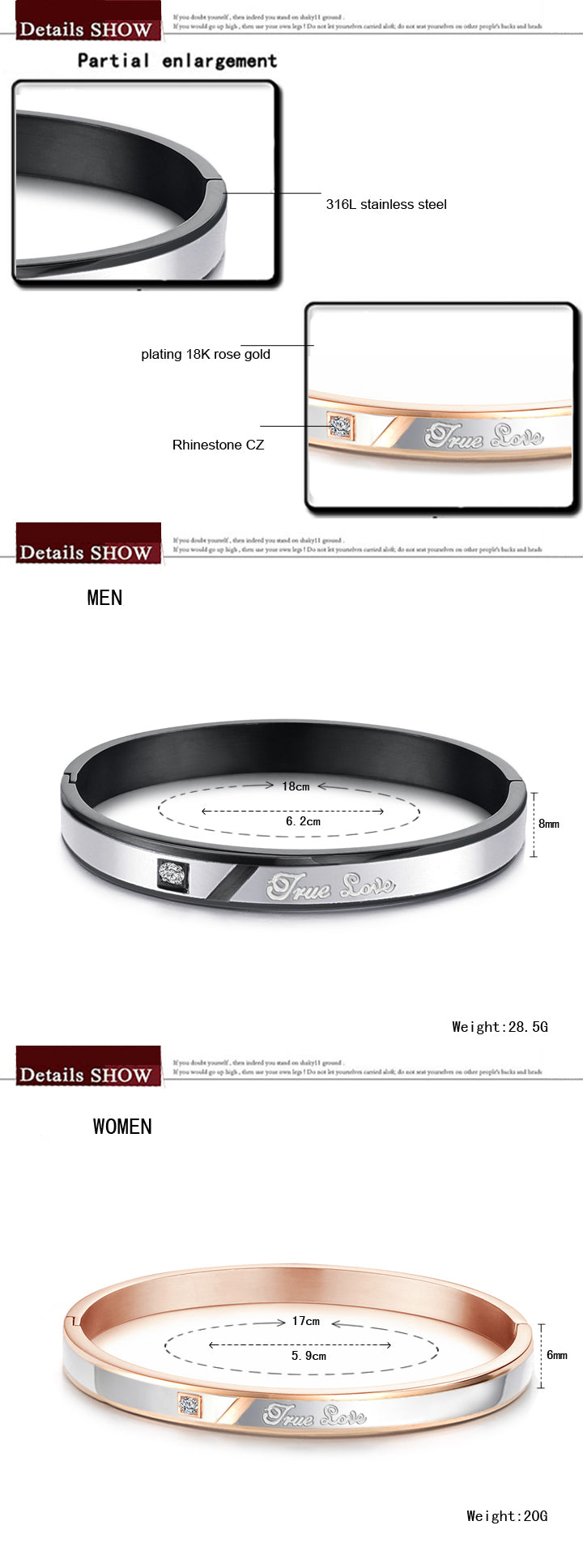 True Love Couple Bangle Set Rose Gold Black Bracelet Matching for Women Men Stainless steel Fashion Love Gift Charms