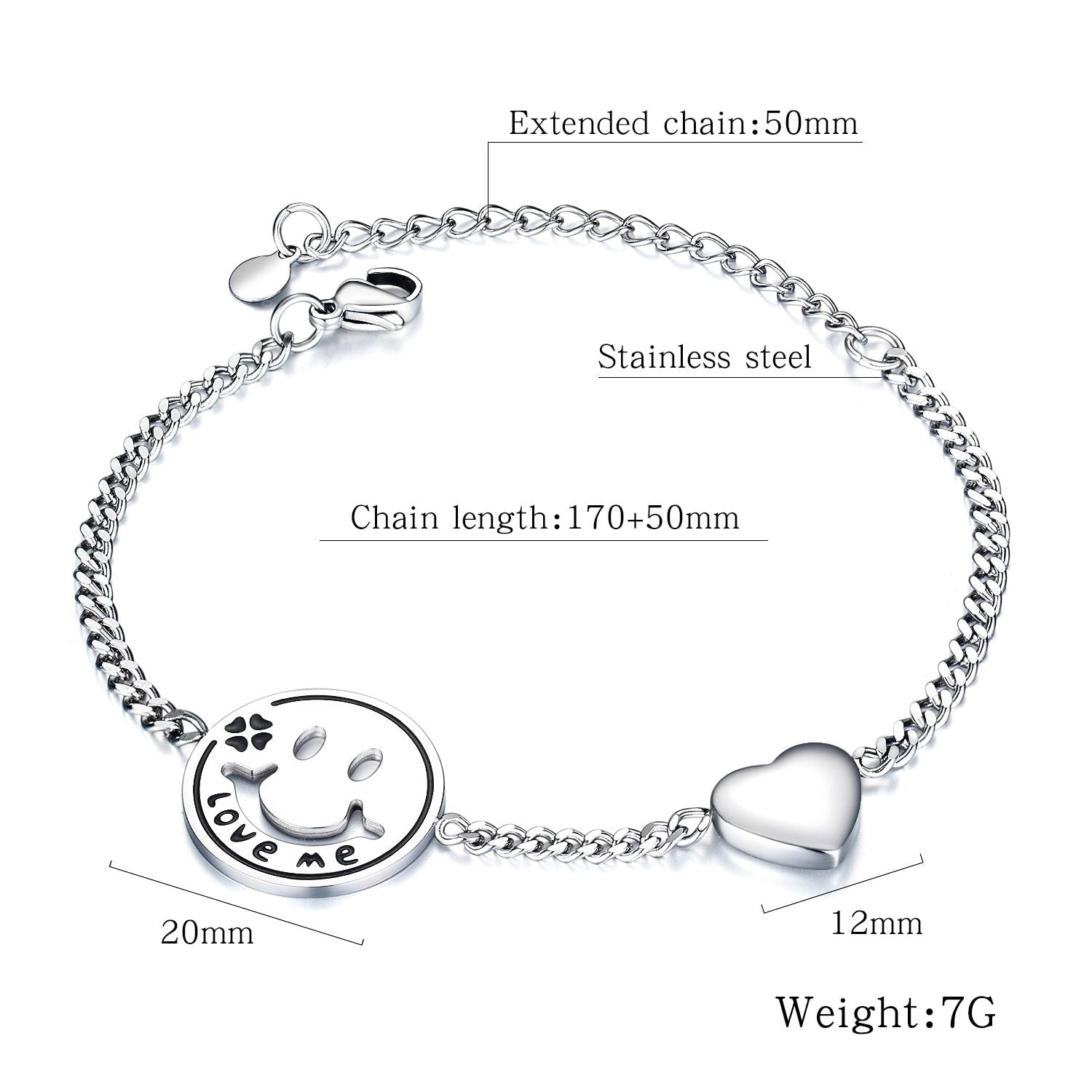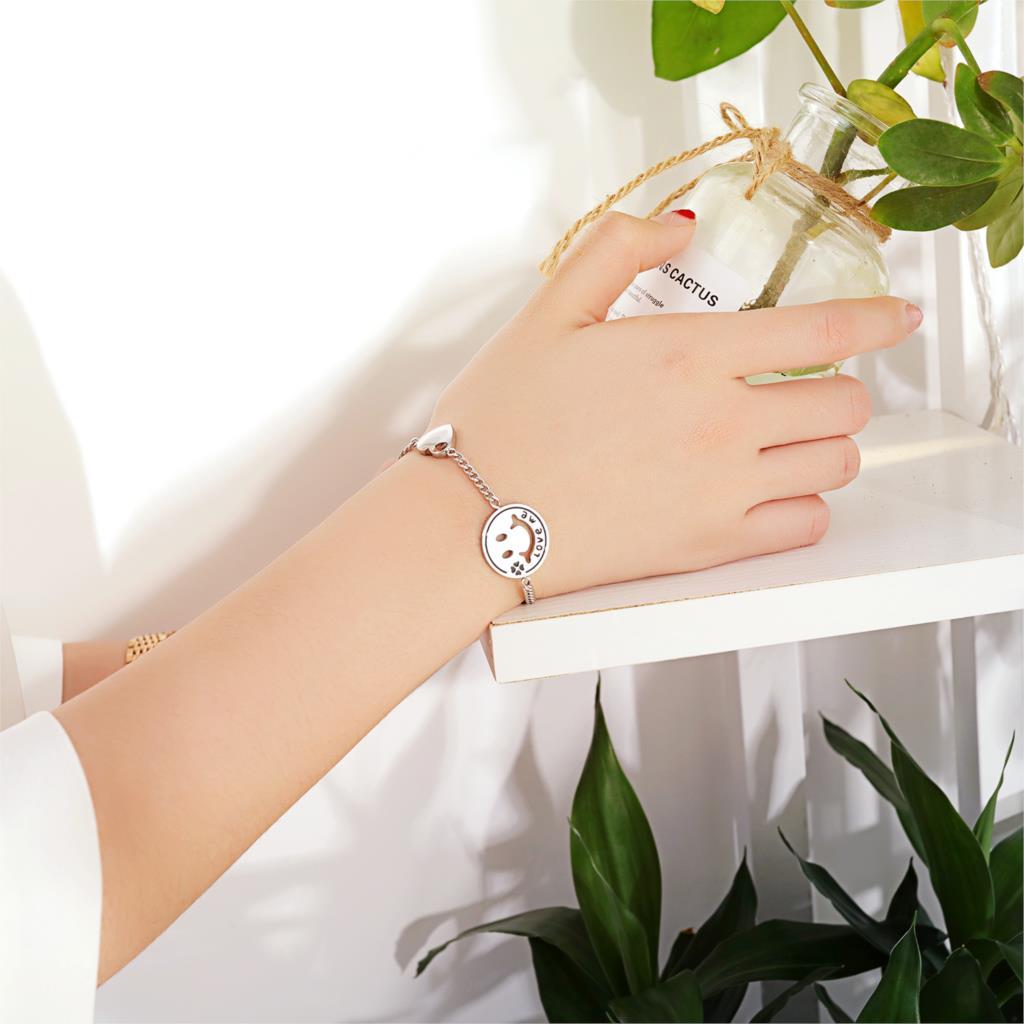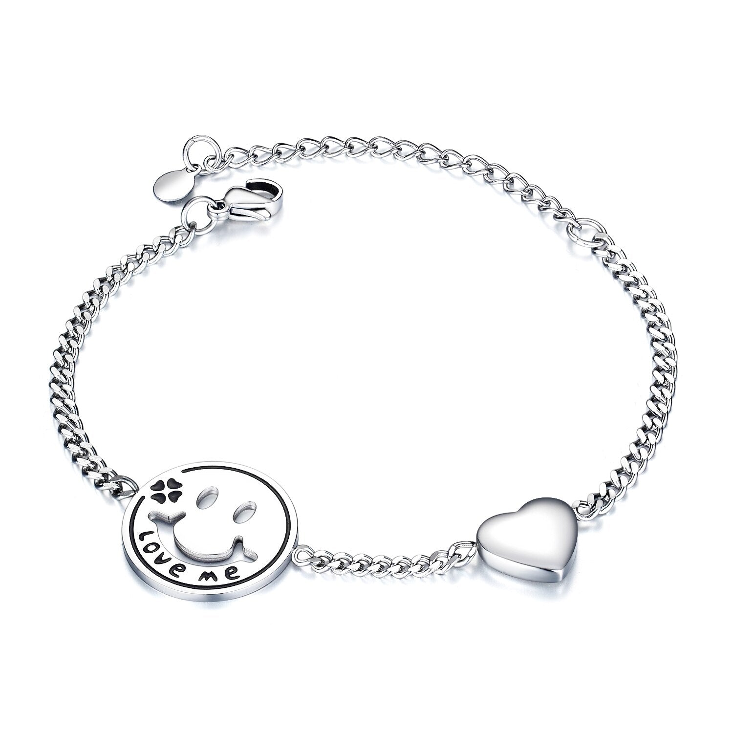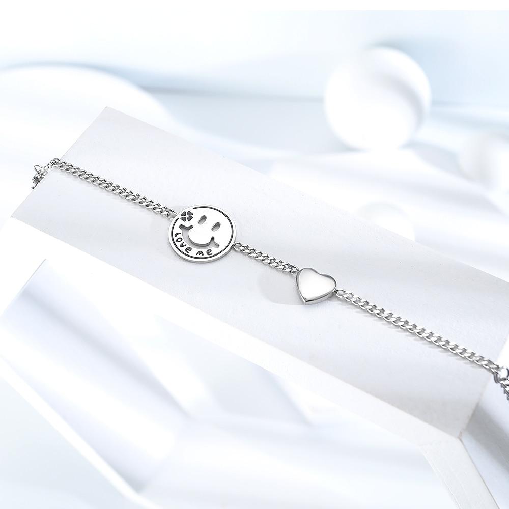 Women Bracelets Love Heart Smile Face Stainless Steel Metal Tone Charm Adjustable Chain Wristband