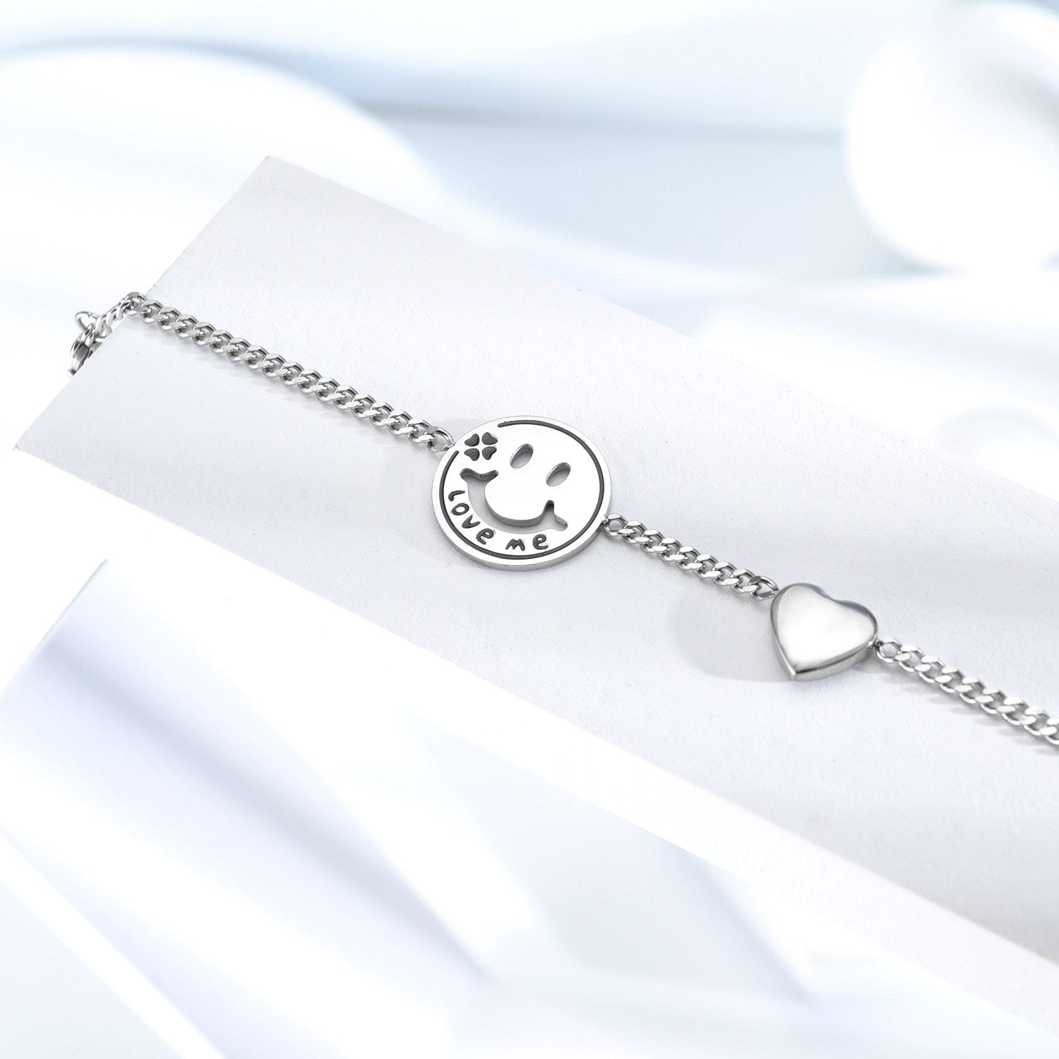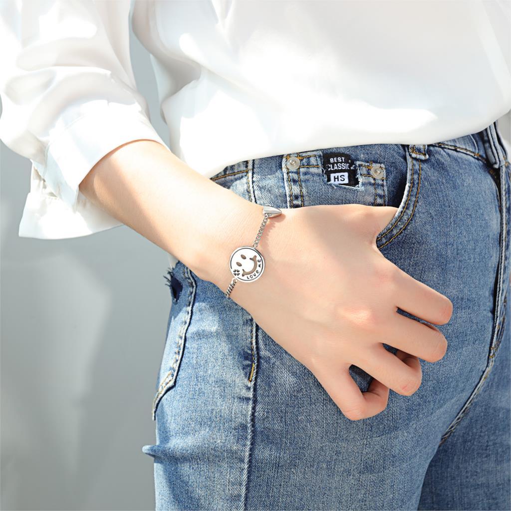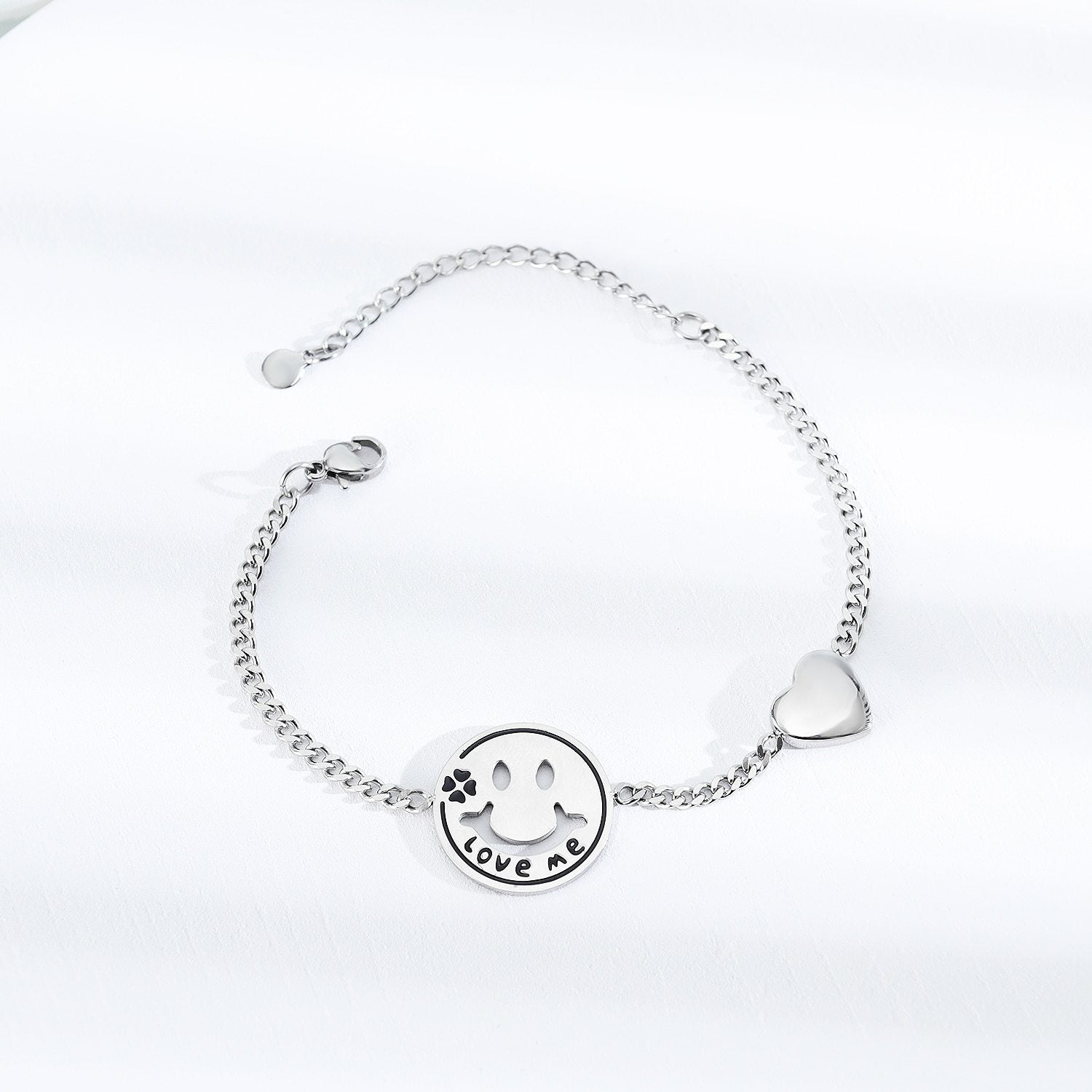 Women Bracelets Love Heart Smile Face Stainless Steel Metal Tone Charm Adjustable Chain Wristband