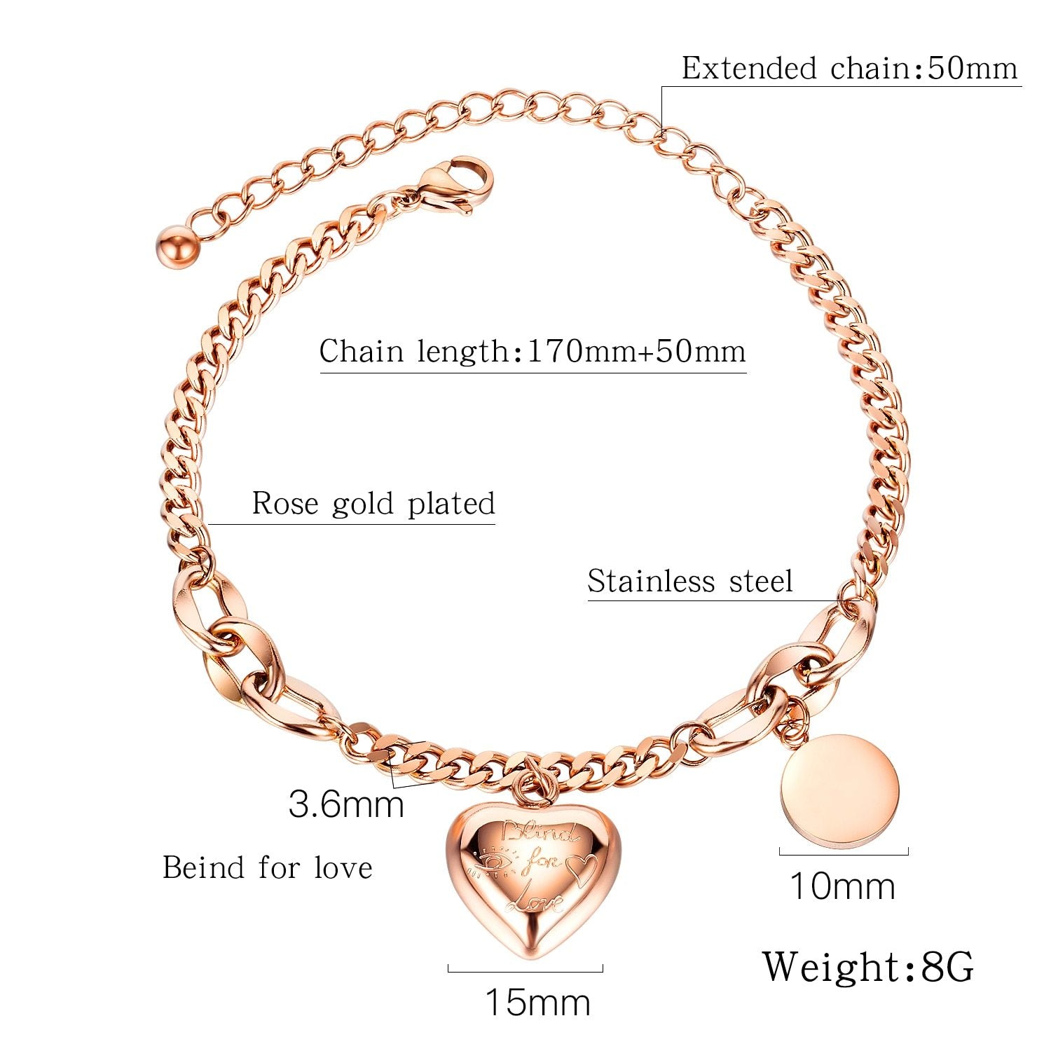Women Love Heart Words Bracelet Stainless Steel Designer Charms Rose Gold/ Gold/ Steel Lady Elegant